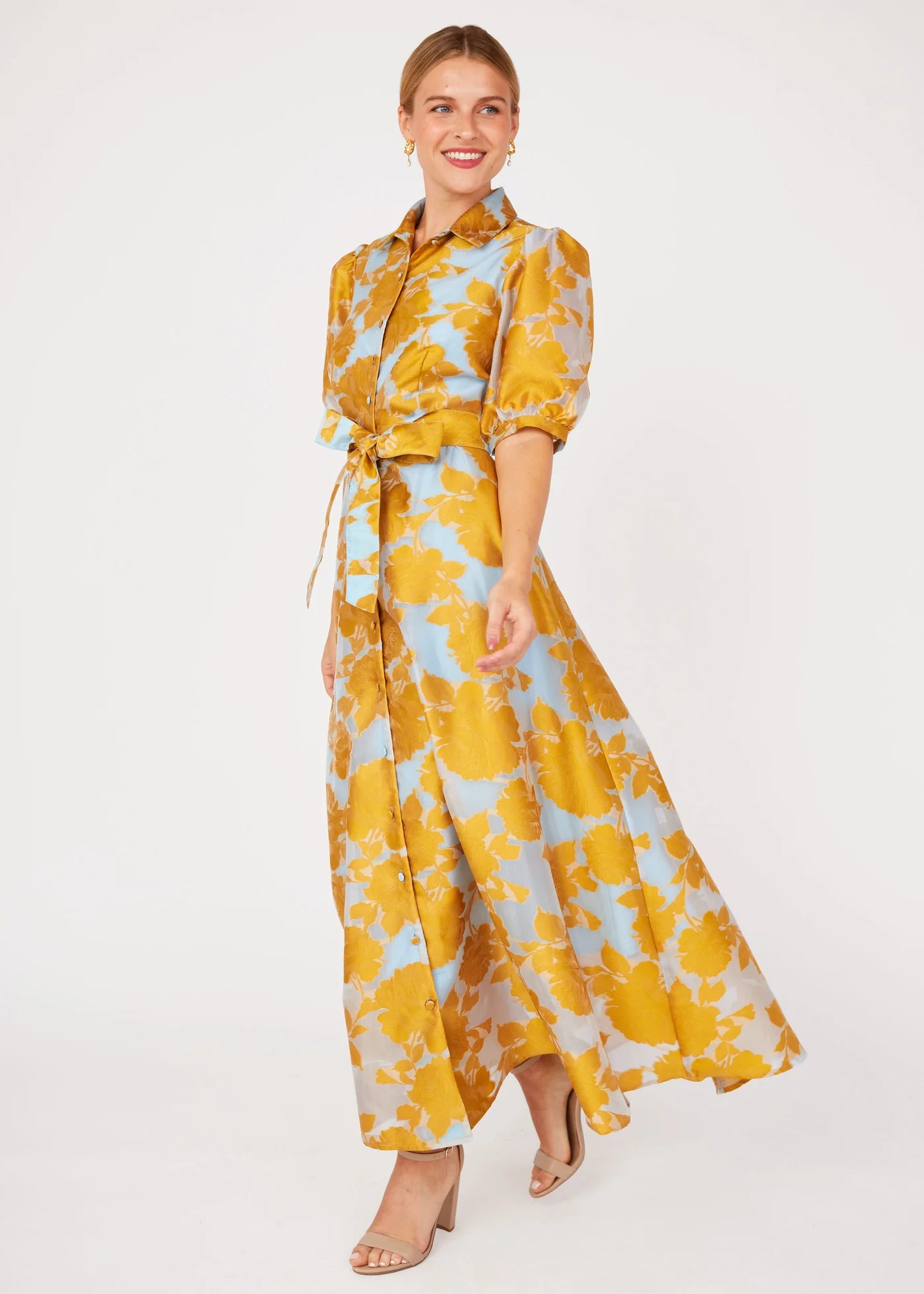 Charlotte Gown in Gold Tea Rose Organza by Abbey Glass