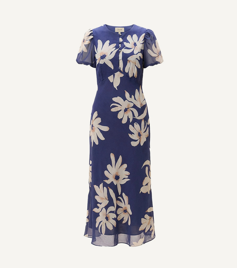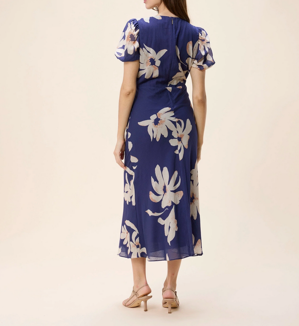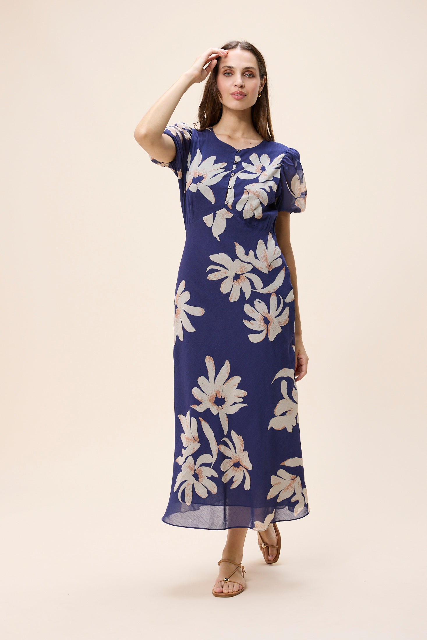 The Jianna Ankle Dress features an elegant silhouette, ethically handcrafted in India. Puff sleeves, an empire waist, and delicate shirring at the bust create a flattering, feminine shape that flows effortlessly with every step.