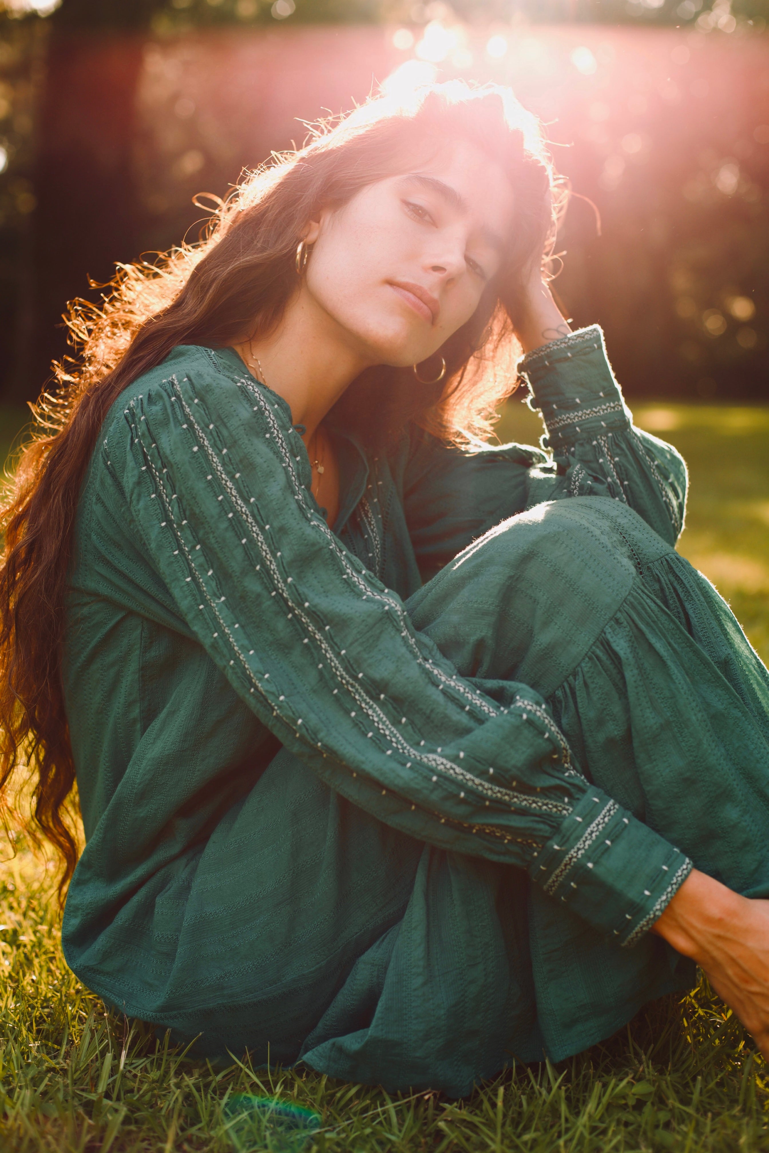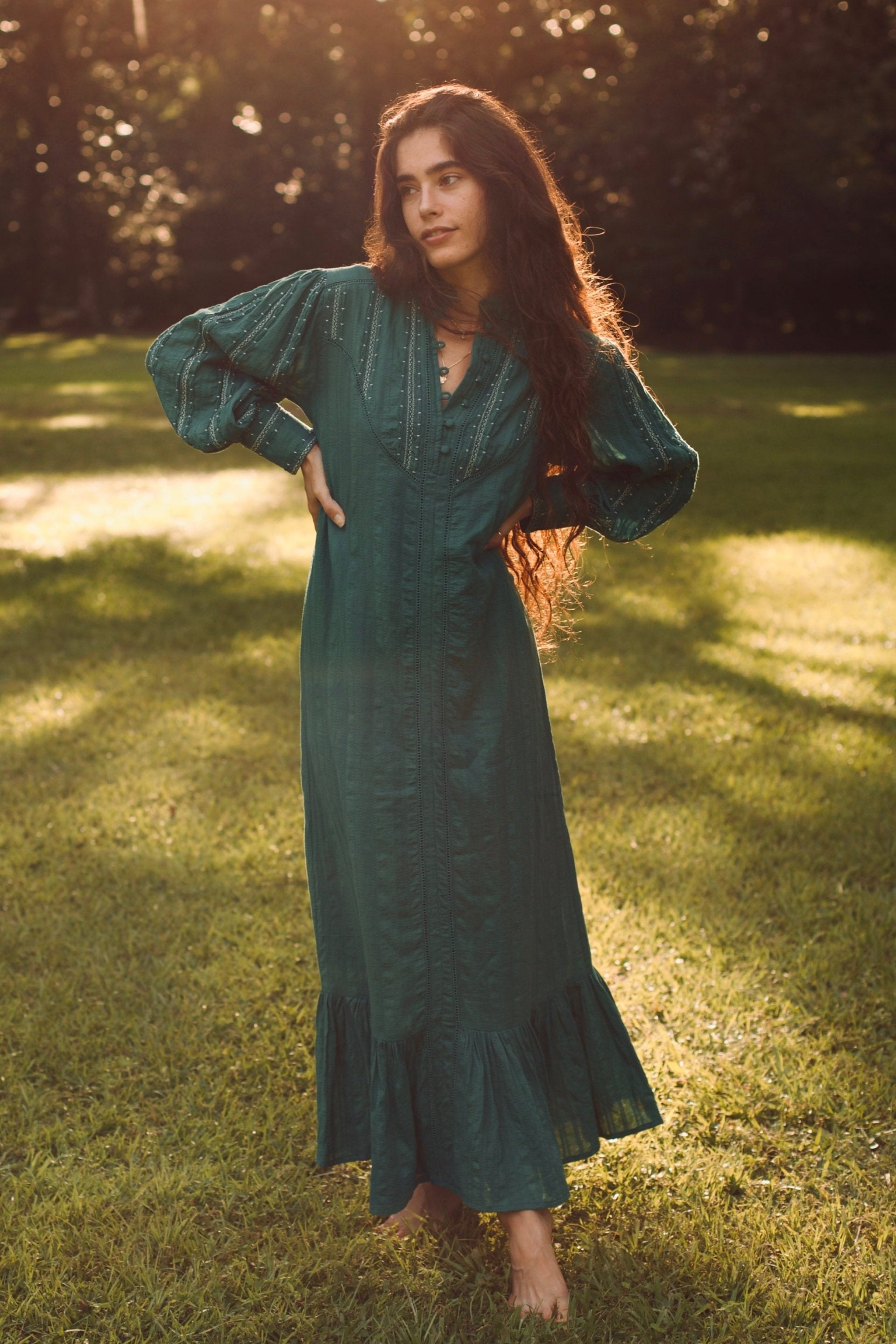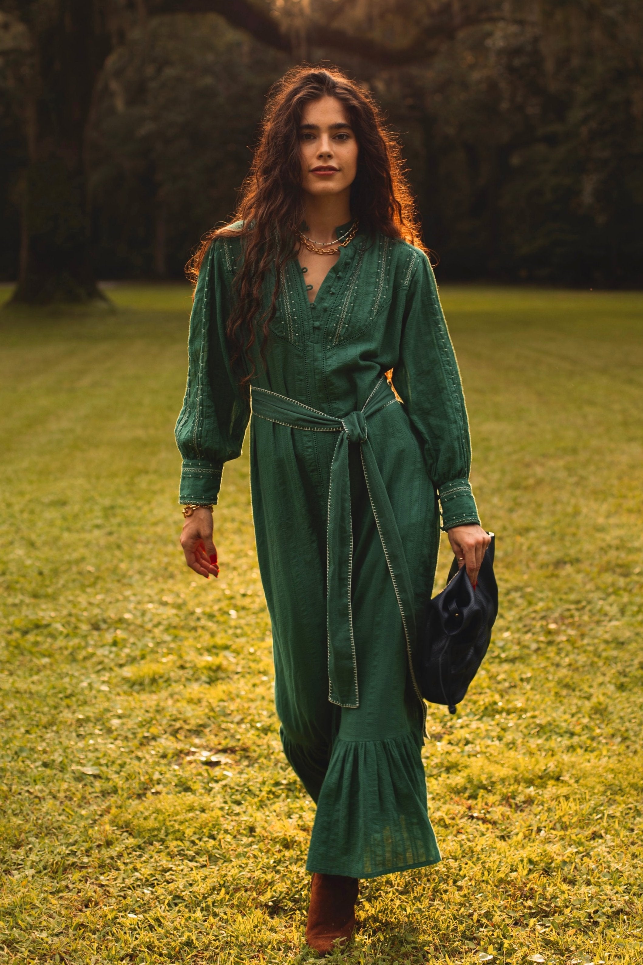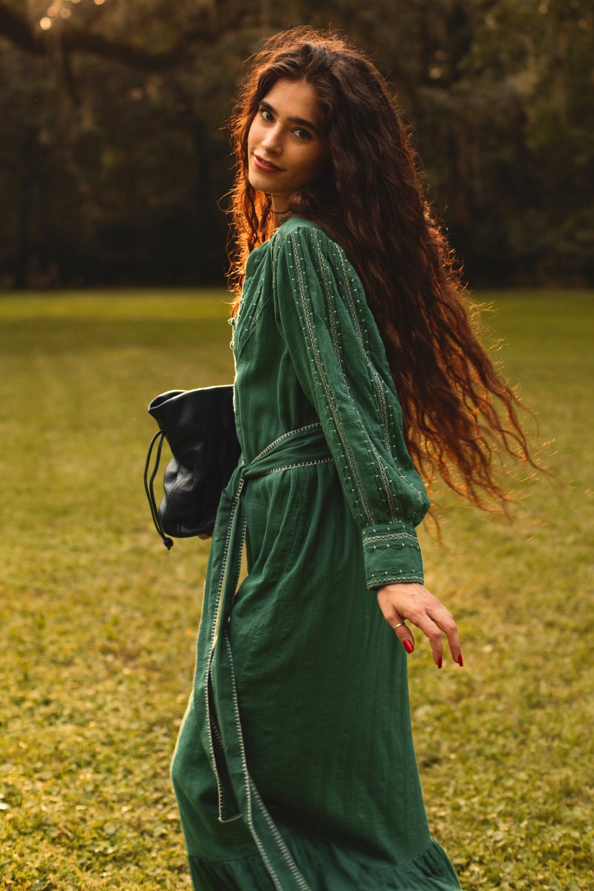 Sutton Embroidered Maxi Dress in Emerald Green by ExVoto