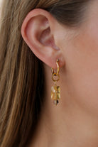 - Genuine semi-precious stone in citrine and smoky quartz earring charm to hang on our gold plated hoop