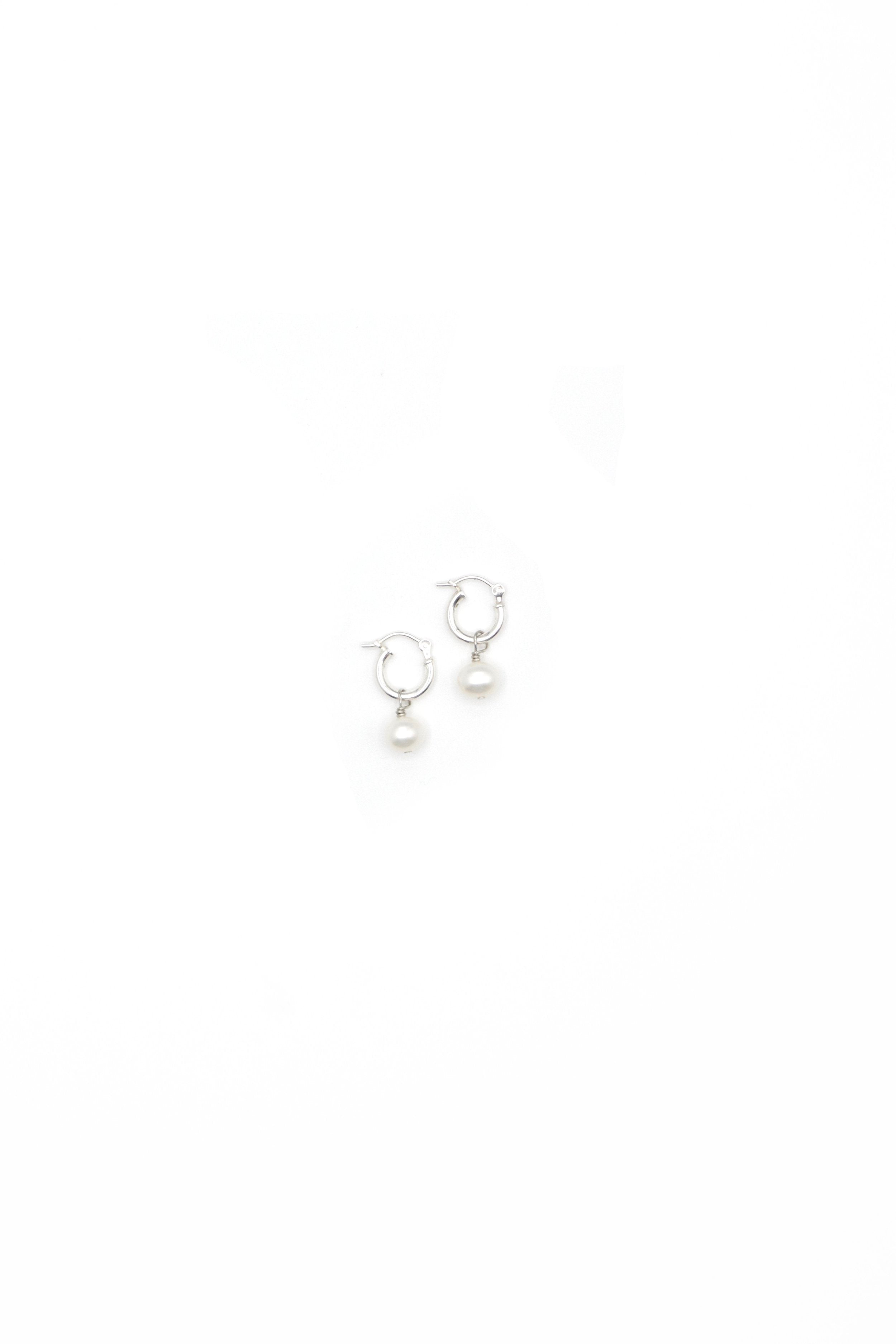 Sterling Silver Petite Pearl Huggie Earring