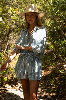 STYLE TIP: These cotton shorts feature an elastic waist with a tie string detail for enhanced comfort. Suitable for casual outings or beach days, they can be paired with the Sage Button Front Shirt in a matching blockprint for the full look!