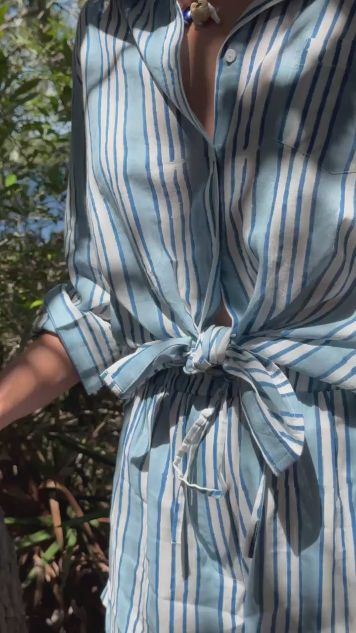 Aiden Shorts in Clear Sky & Daphne Blue Stripe by ExVoto