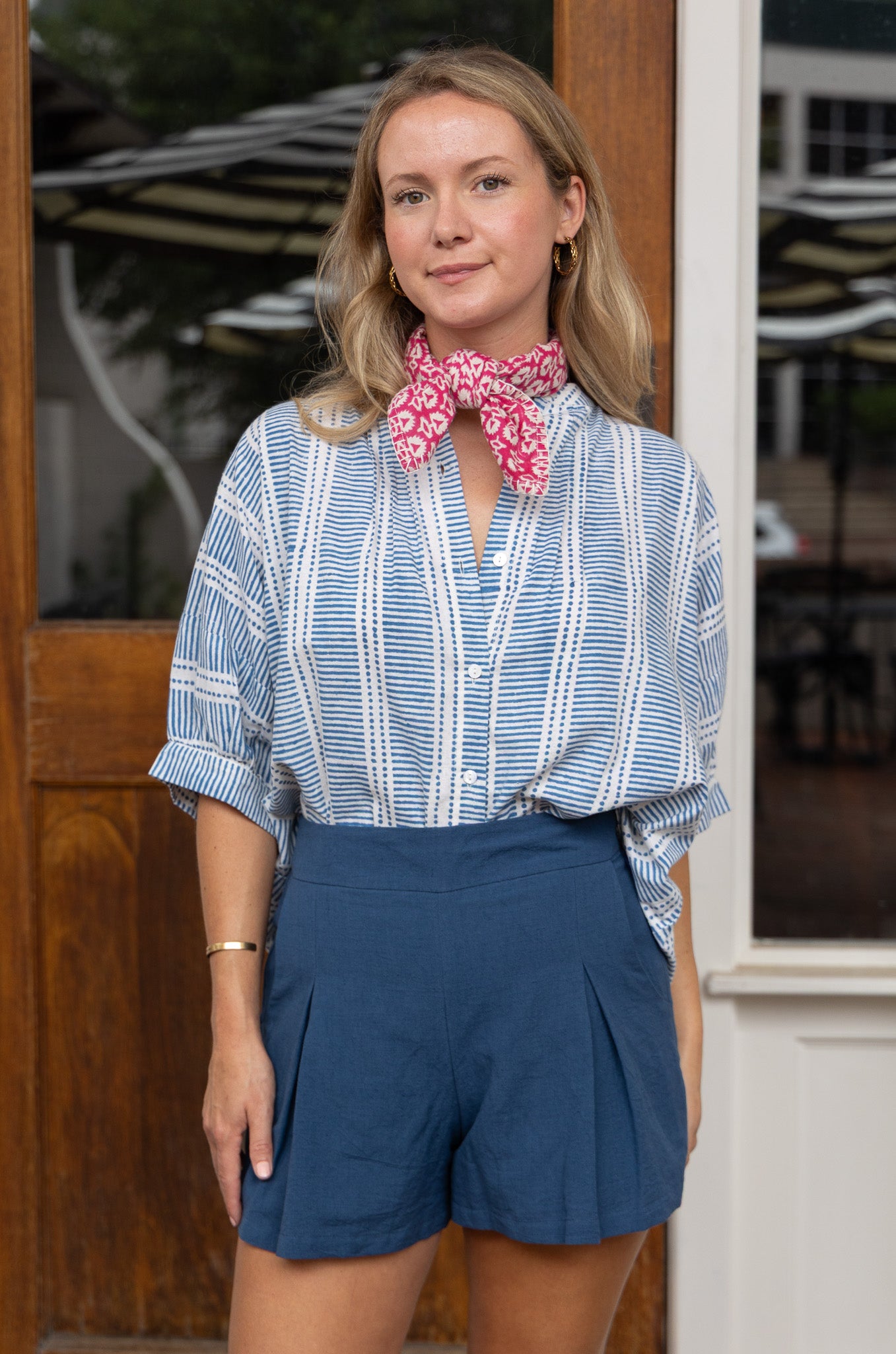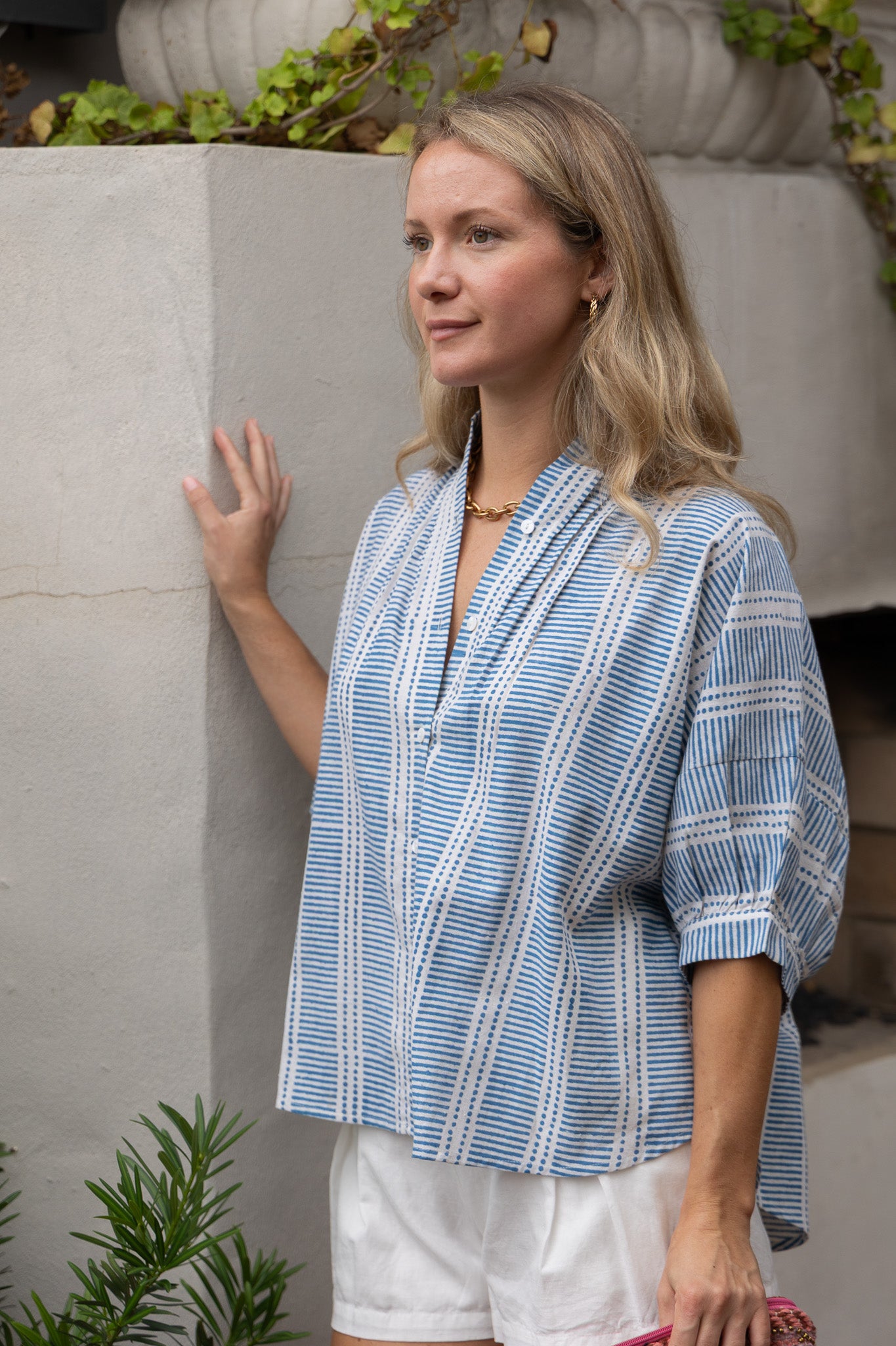 Poppy Blouse in Daphne Blue Line Blockprint by ExVoto