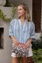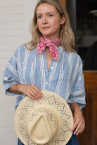 STYLE TIP: Our best selling Poppy! A versatile and comfortable blouse with a flattering one-size fit and a draped, relaxed silhouette. Lightweight linen and cotton blend fabric and timeless design make it perfect for day to day wear! Wear untucked with shorts for a relaxed outing or French tucked with denim for a more tailored look! Pairs with the Sasha Maxi Skirt in the same print!