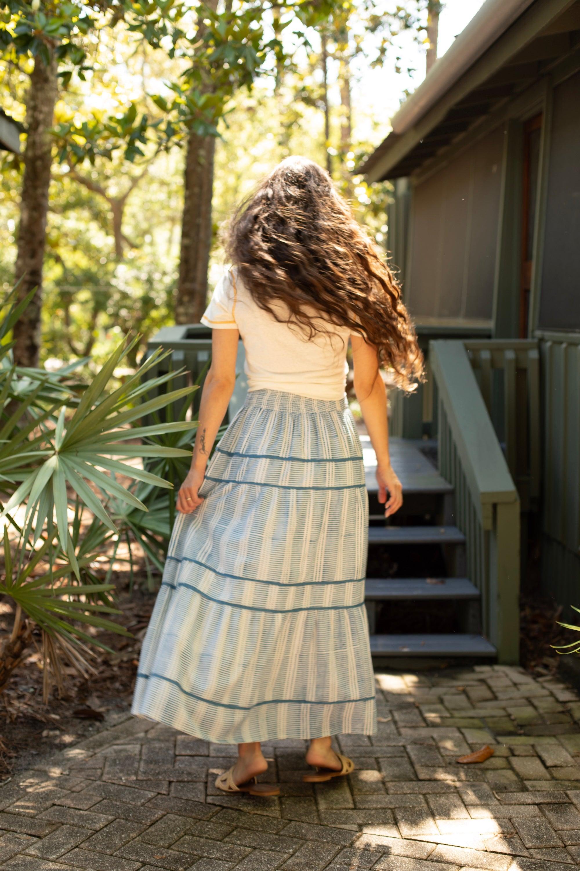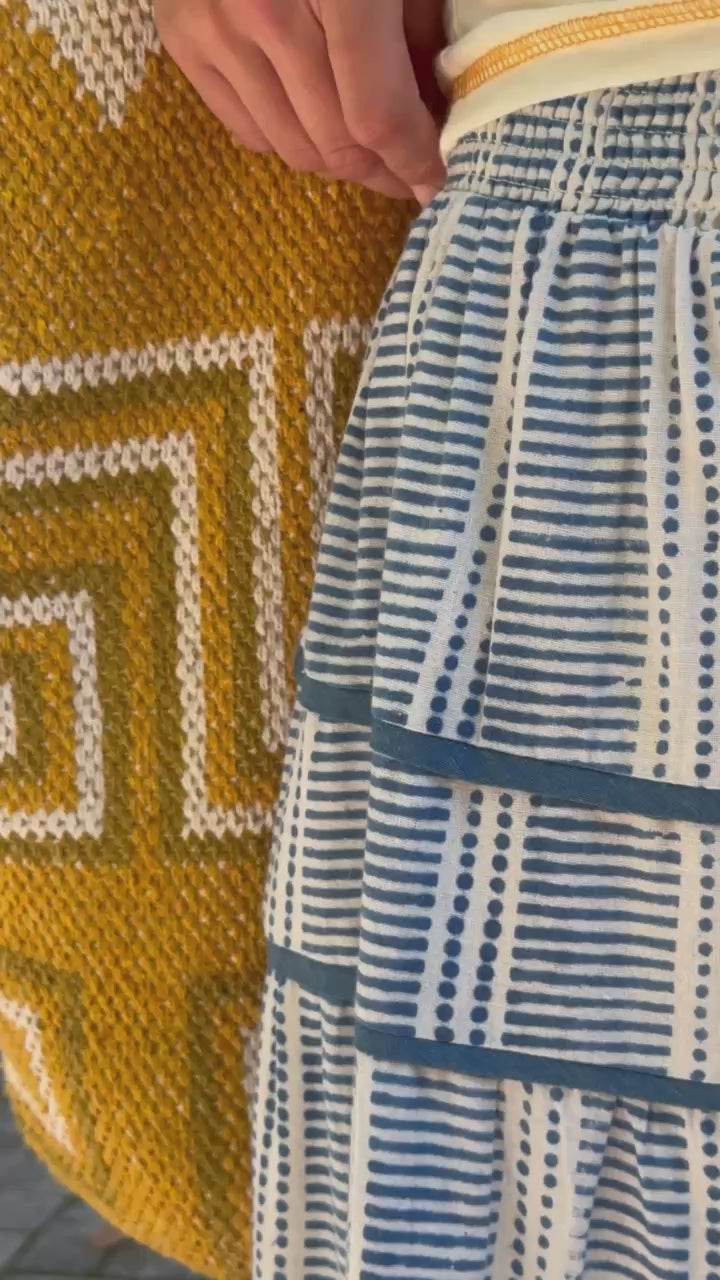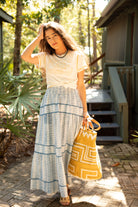 Sasha Maxi Skirt in Daphne Blue Line Blockprint by ExVoto