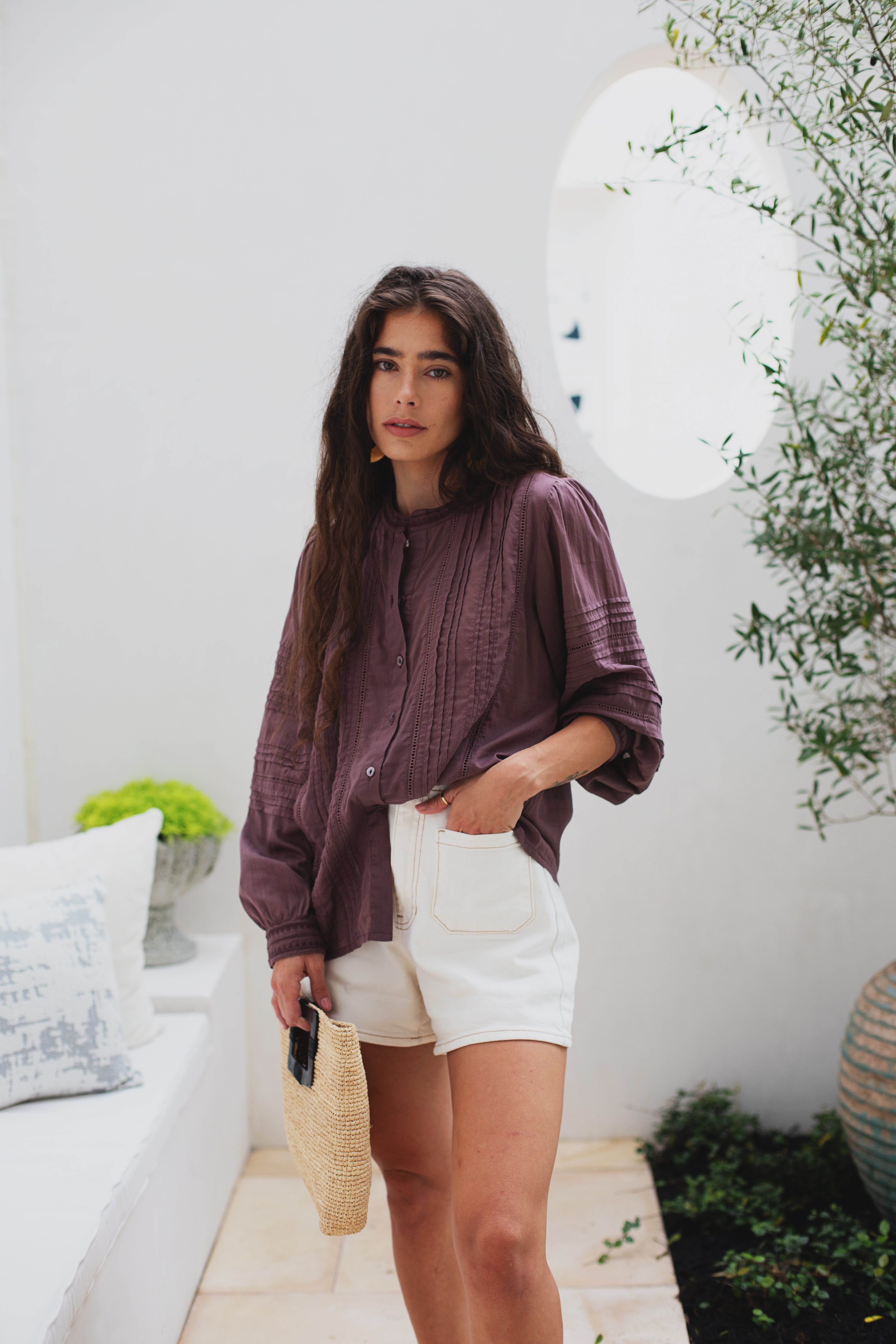 STYLE TIP: Discover the must-have Olivia Blouse, perfect for all seasons! Style it with grey, black, or brown for Fall and white for Spring and Summer. This versatile color transforms effortlessly, appearing rich and sophisticated next to dark hues and vibrant and lively when paired with white or winter white.
