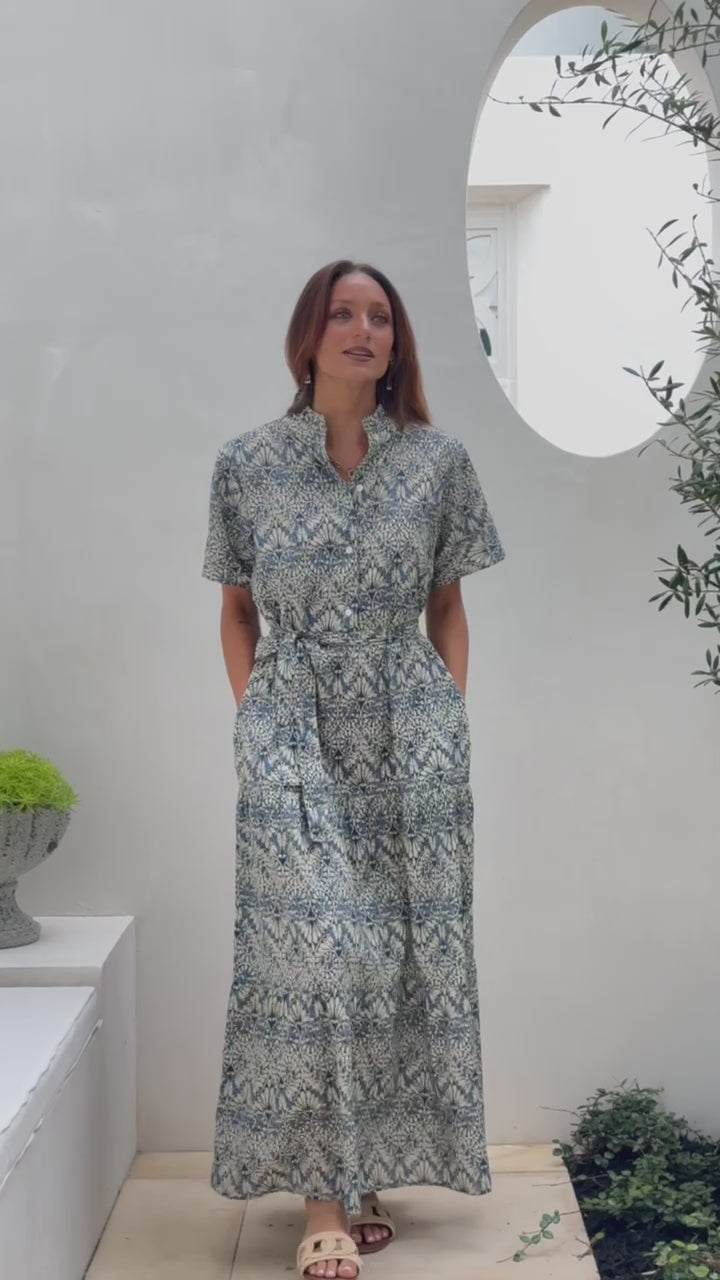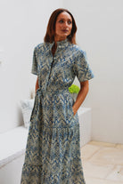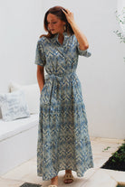 Val Maxi Dress in Blue Blockprint by ExVoto