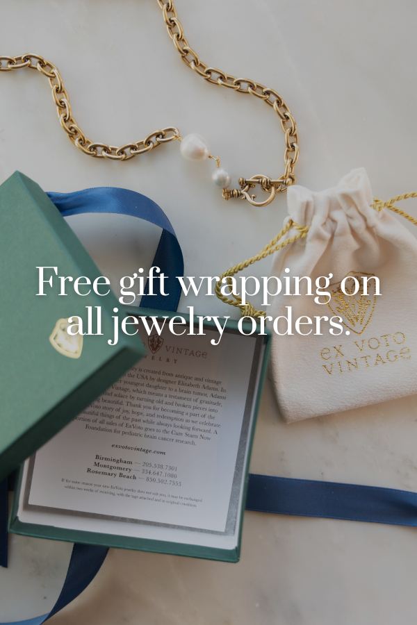 ExVoto, meaning a testament of gratitude, is a collection of one-of-a-kind and limited-edition pieces designed by our founder, Elizabeth, using antique elements.