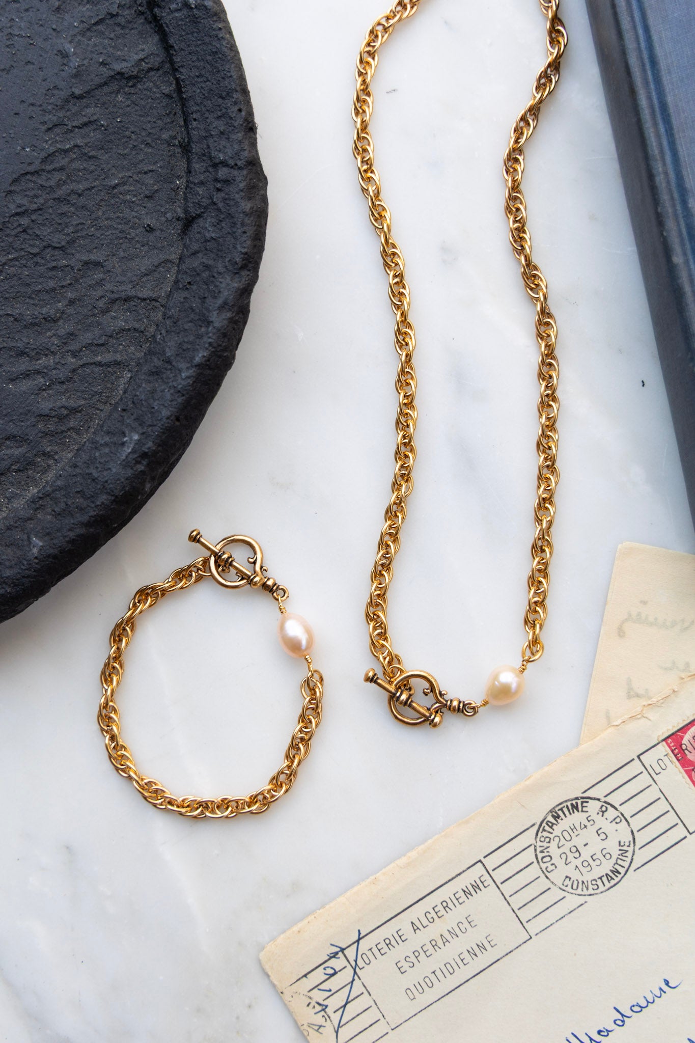 Flower Girlfriend Bracelet and Lilly Pearl with Locket Necklace Gift Set