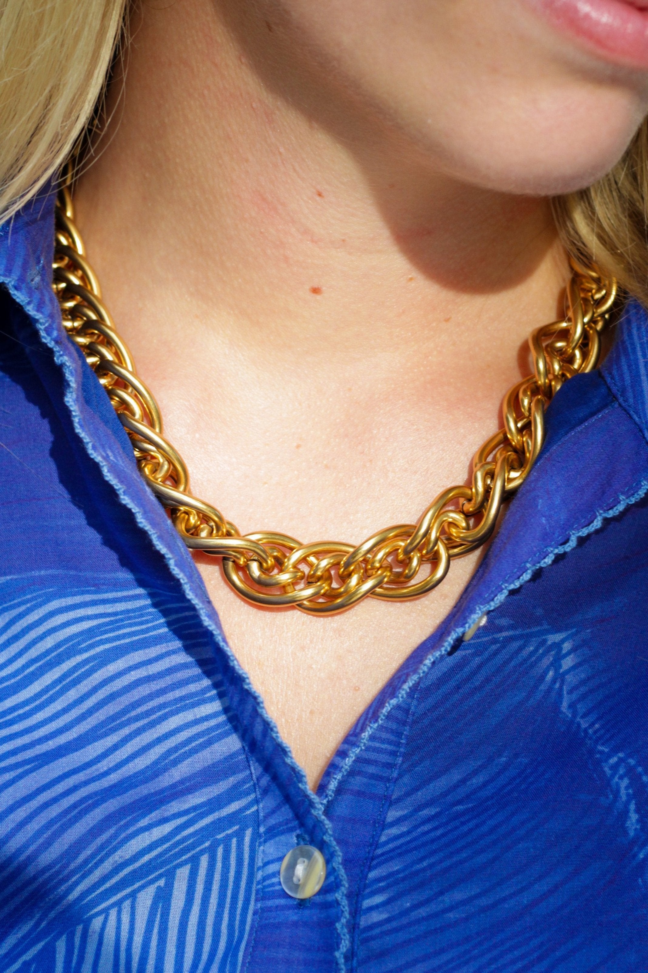 - 18k gold-plated necklace featuring vintage chain and our exclusive ExVoto Vintage toggle closure at back.