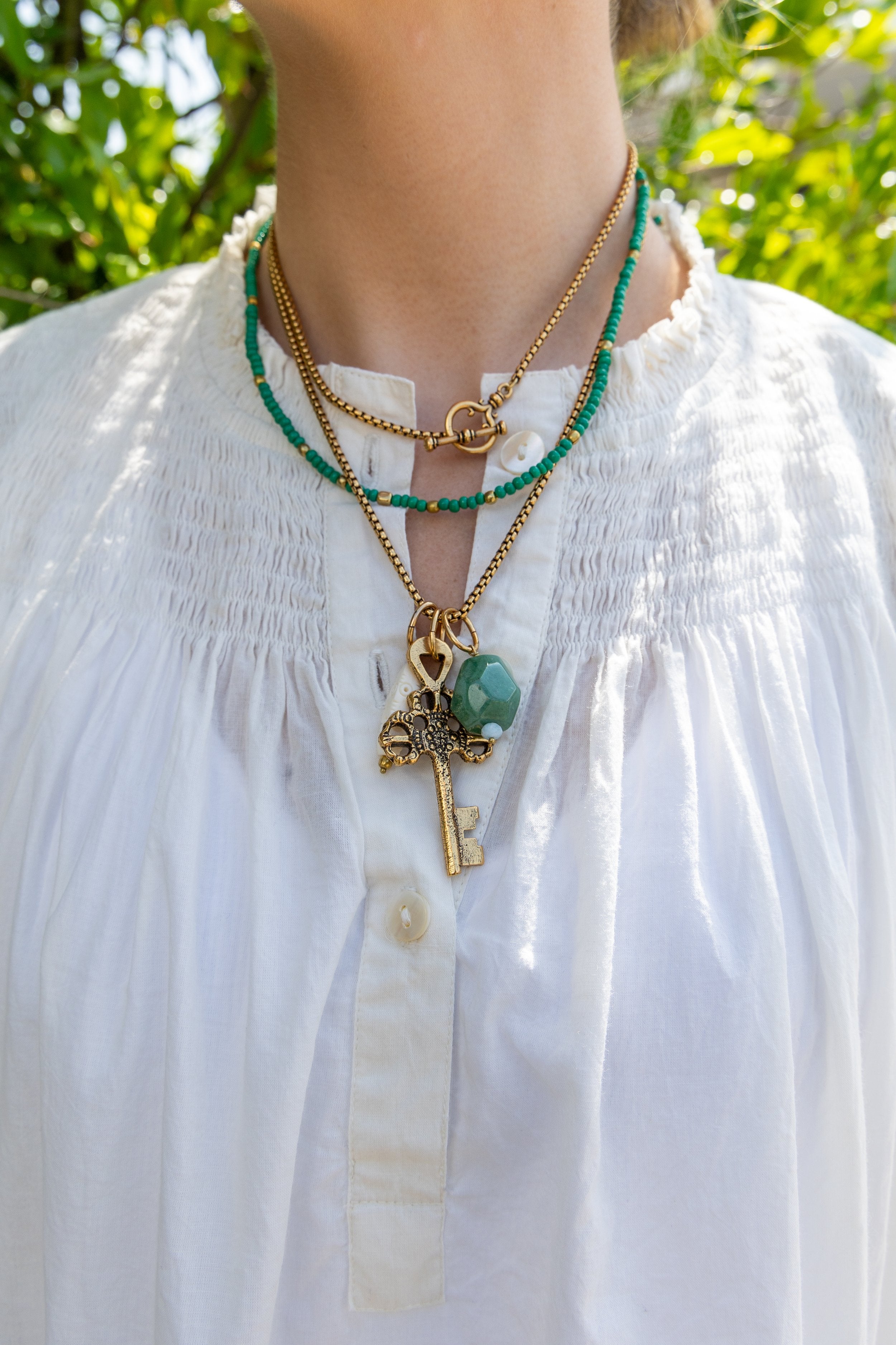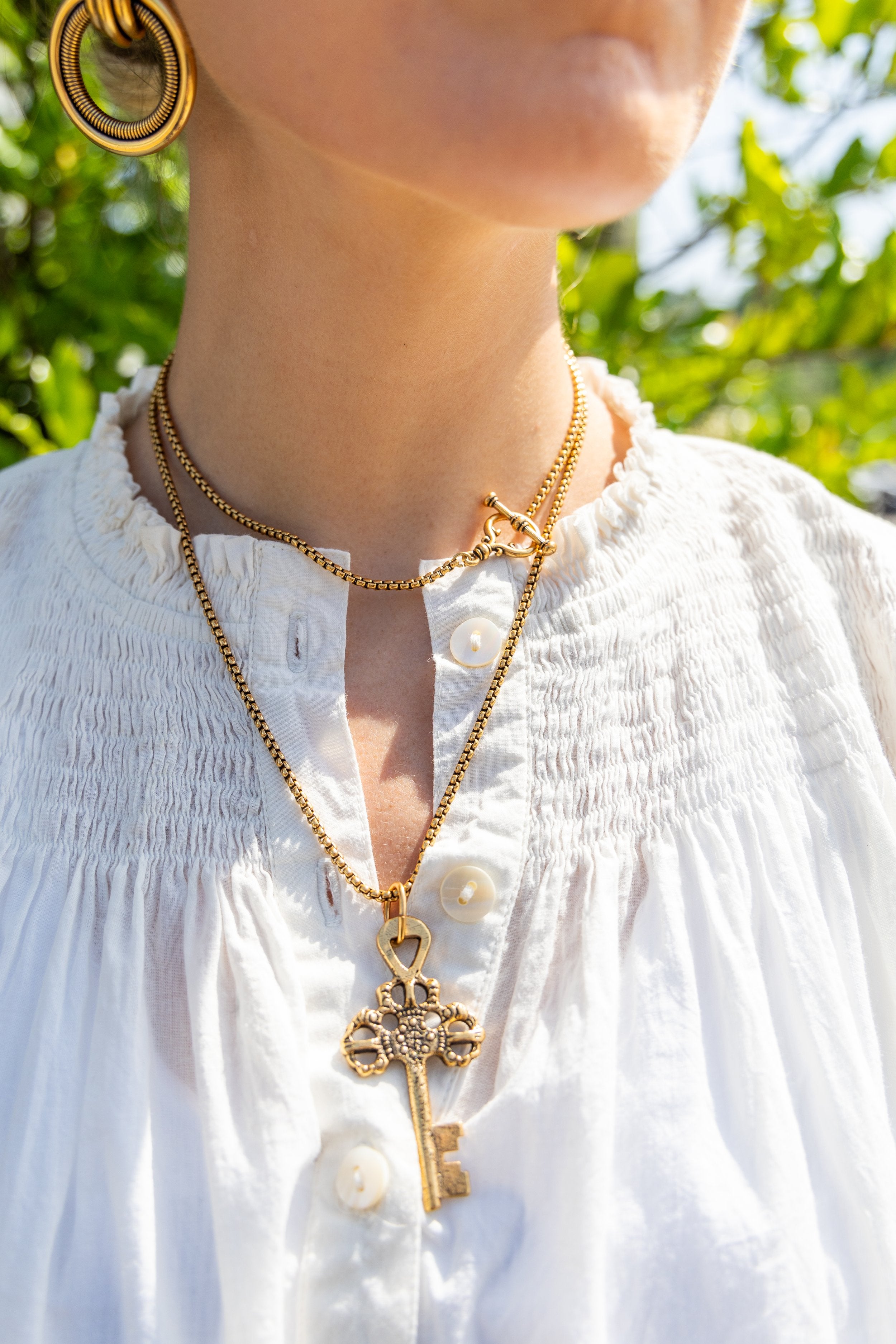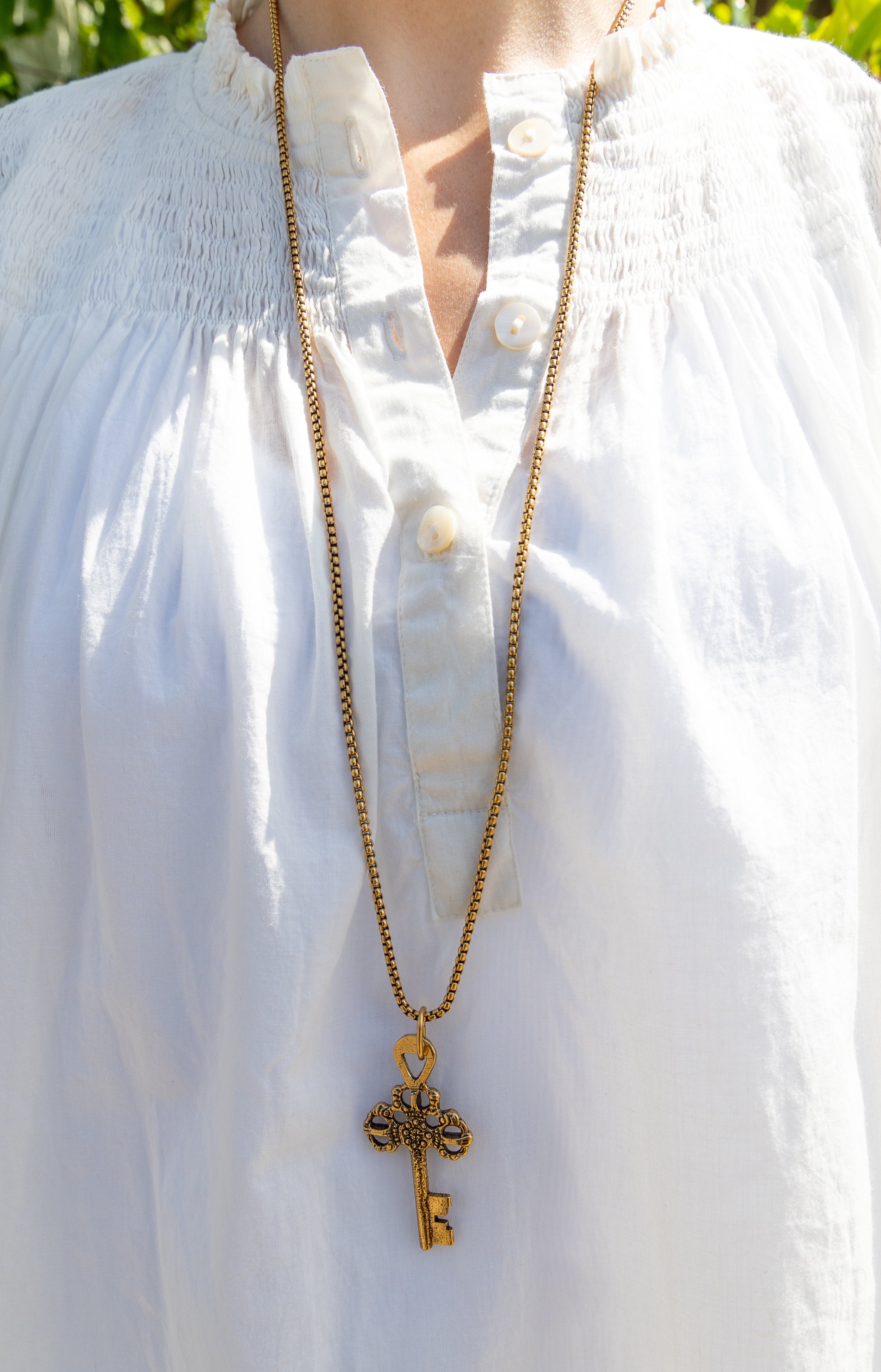- This necklace features a key pendant cast from an original antique Tibetan key discovered by our founder and designer, Elizabeth Adams.