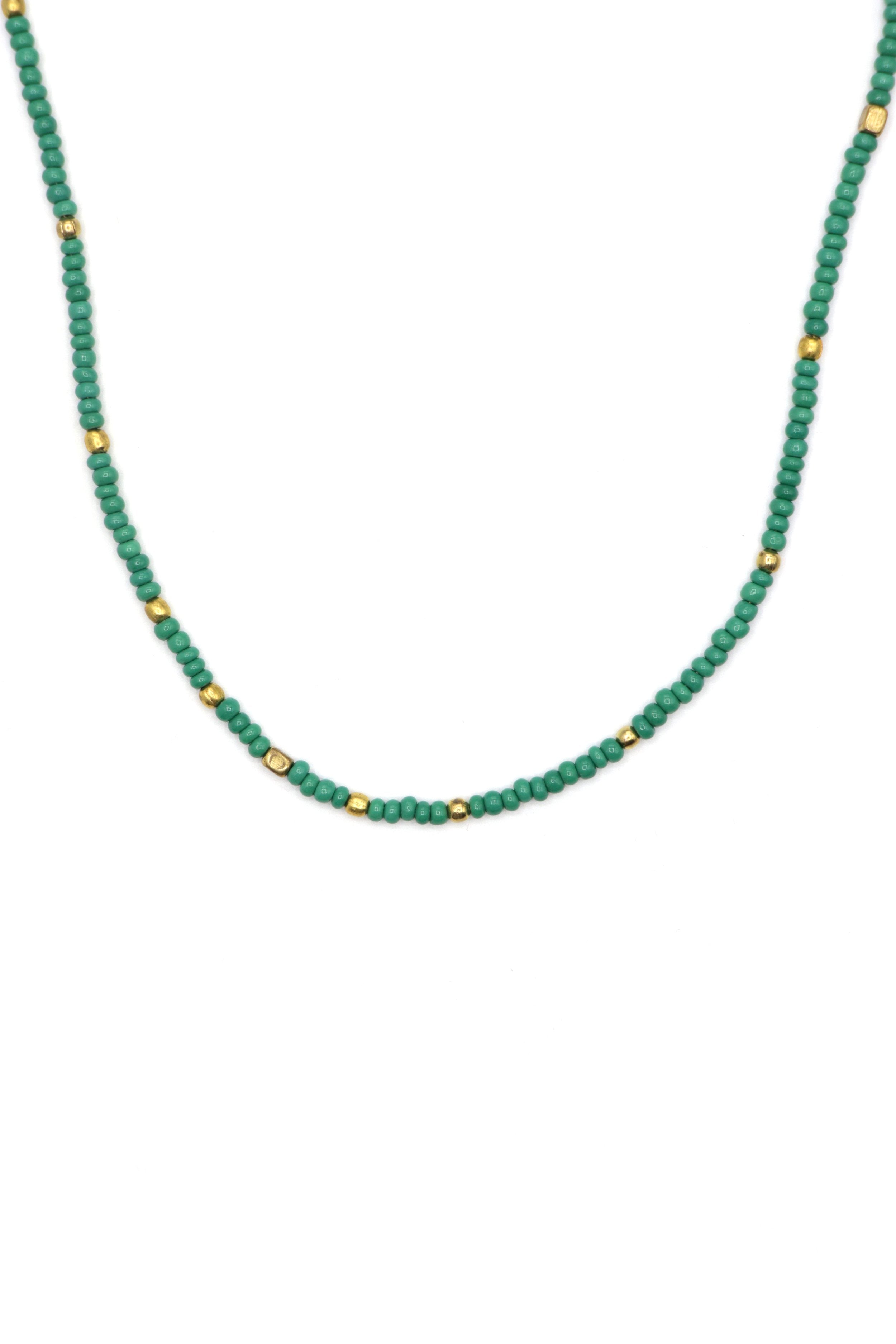17 - 20" Vintage Green and Brass Beaded Necklace