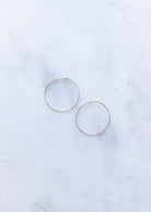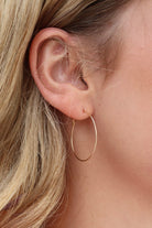 - Gold filled hoop earring measures 1.5” and has a hook closure