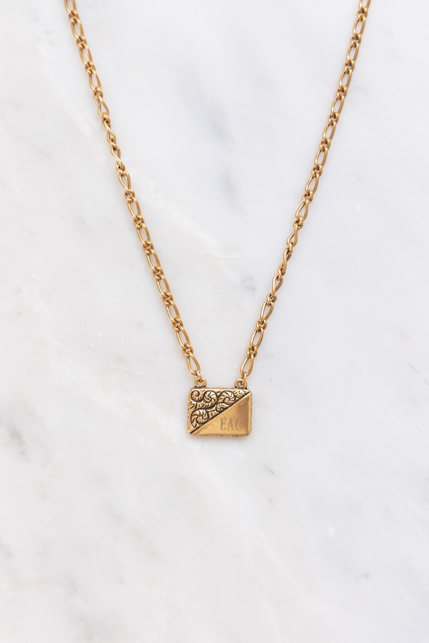 - This necklace features vintage chain and adjustable lobster claw clasp (16"-18").