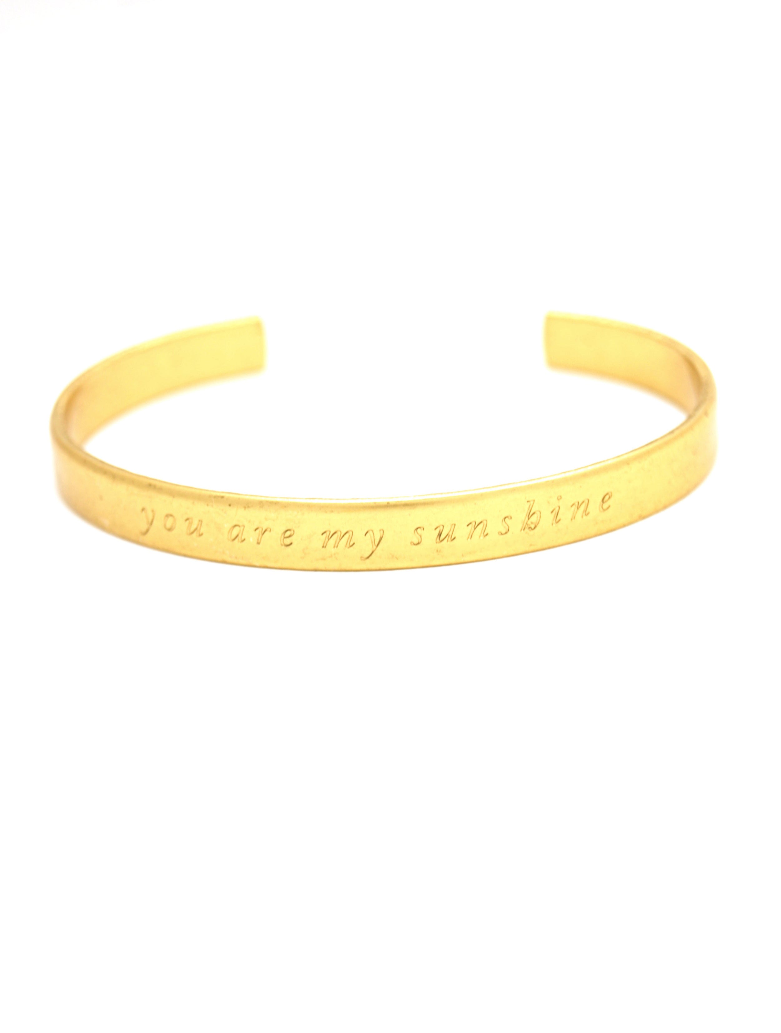 Our dainty cuff bracelet is engraved with “You Are My Sunshine.” A perfect gift for whoever brings light to your life!