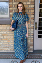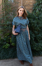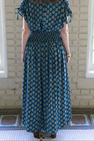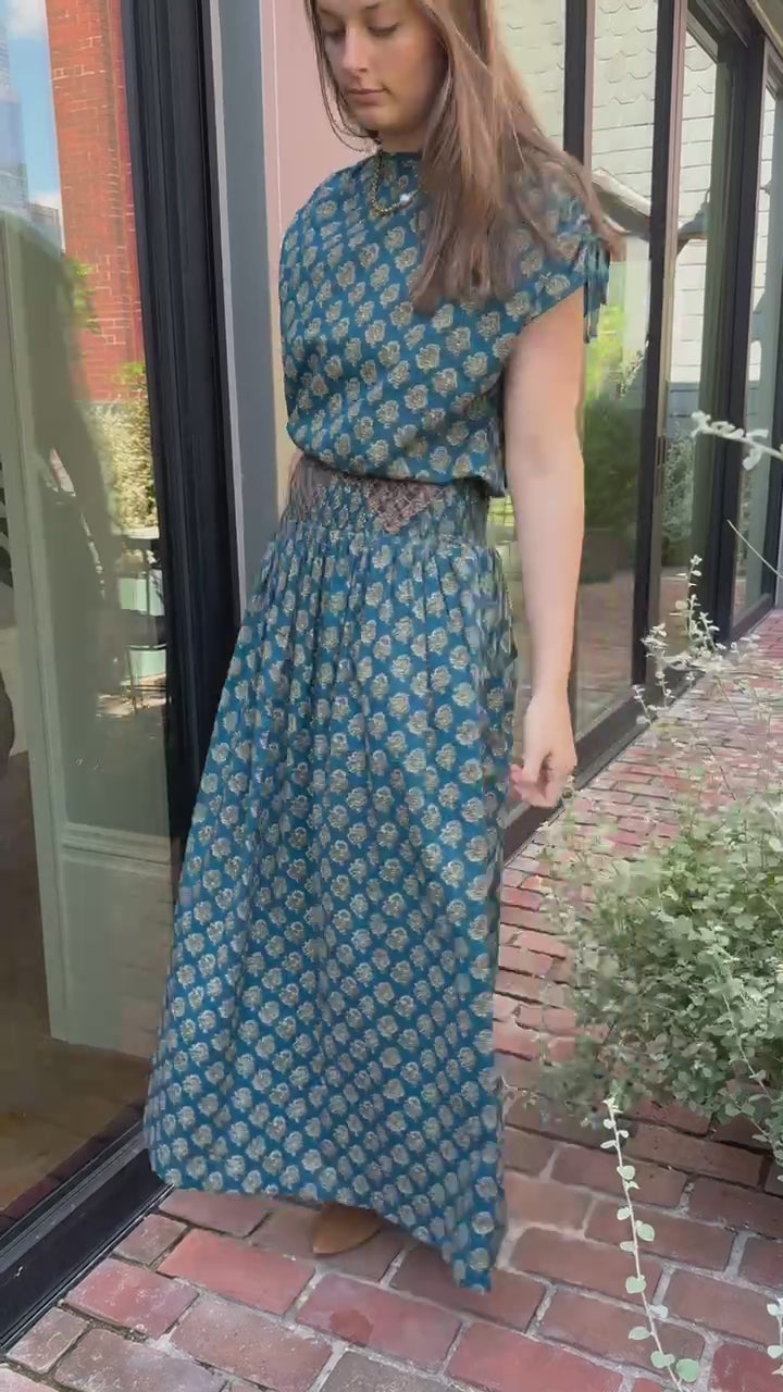 Mia Maxi Skirt with Embroidery in Teal Blockprint by ExVoto