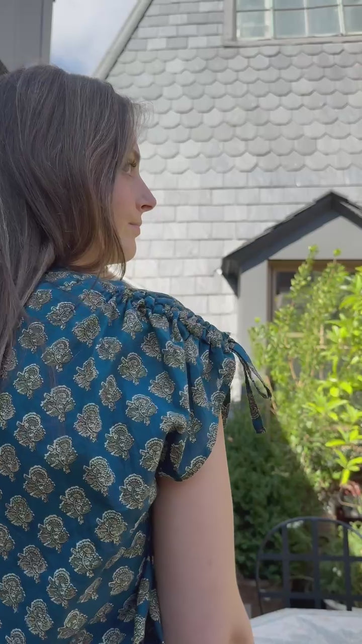STYLE TIP: A versatile one size skirt! Dress her down with sandals, and dress her up with a heel. Need the skirt to be a little longer, or shorter? Slide the skirt down or up on the waist to adjust the length to suit you perfectly! In a beautiful teal blockprint with orange embroidery detail at waistband.