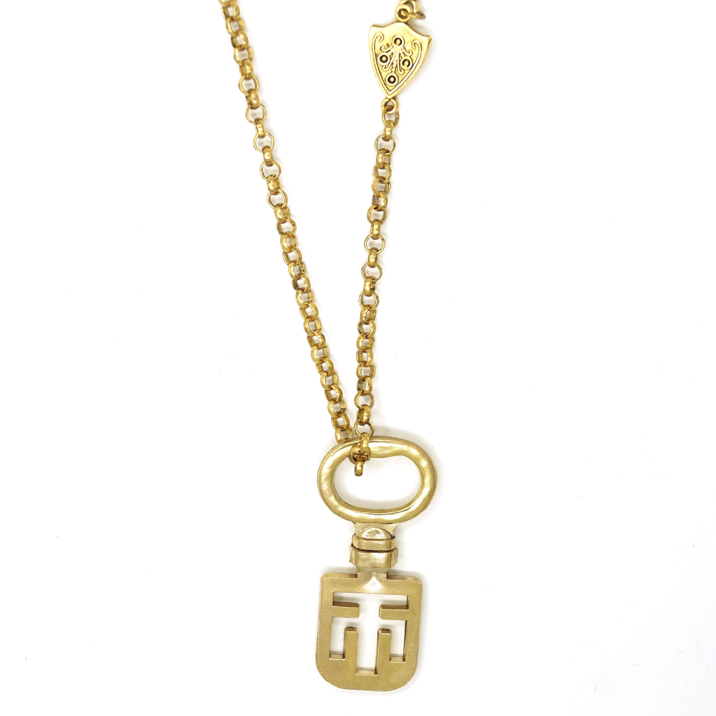 - The key is strung on a 33" gold-plated chain with our signature toggle (which is also a design based on an antique key) and shield interlink.
