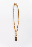 - 18” Lela necklace features a variety of vintage chain, our Scarab pendant, and our exclusive ExVoto toggle.