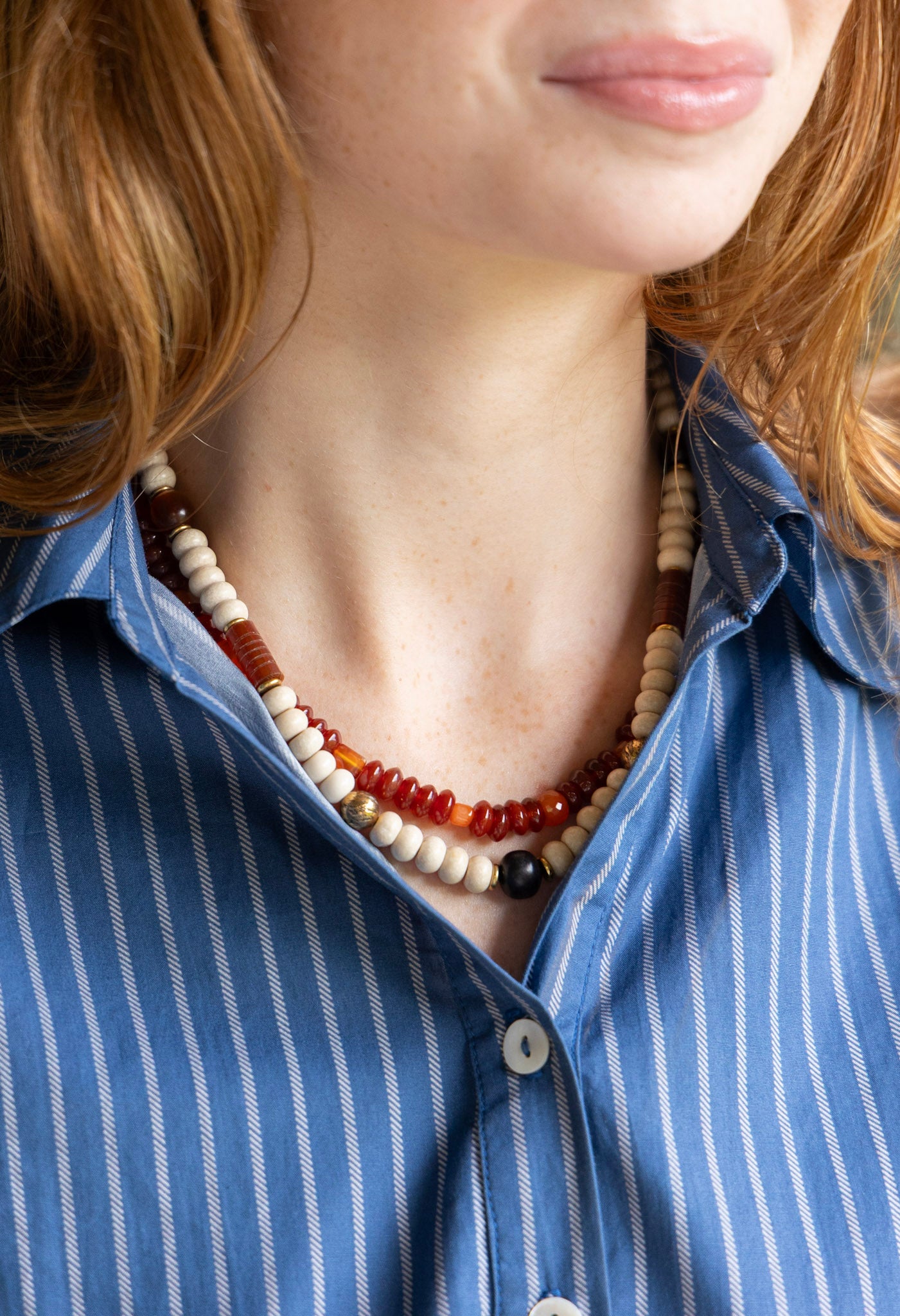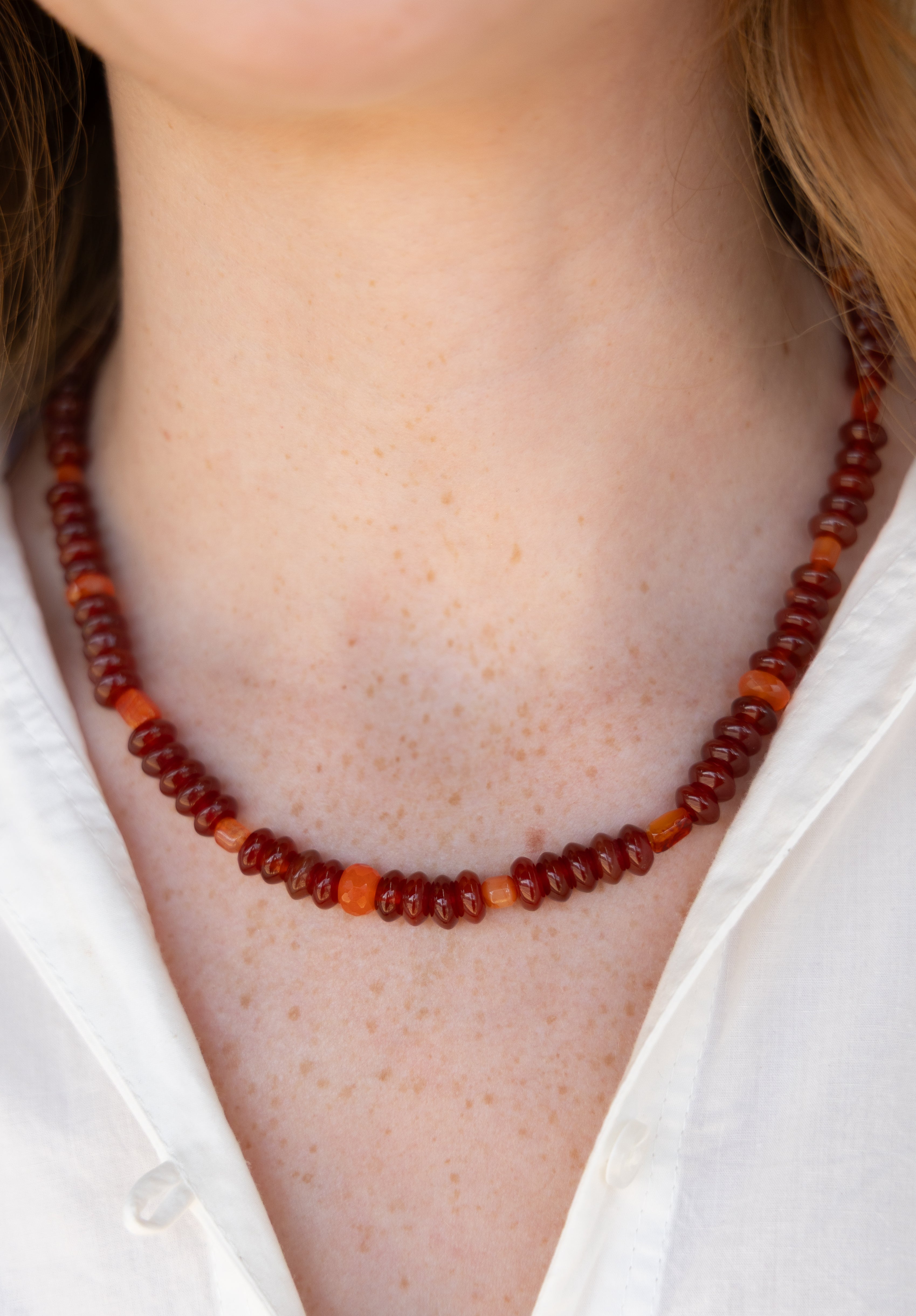 This 18" necklace features genuine carnelian beads and exclusive toggle closure.