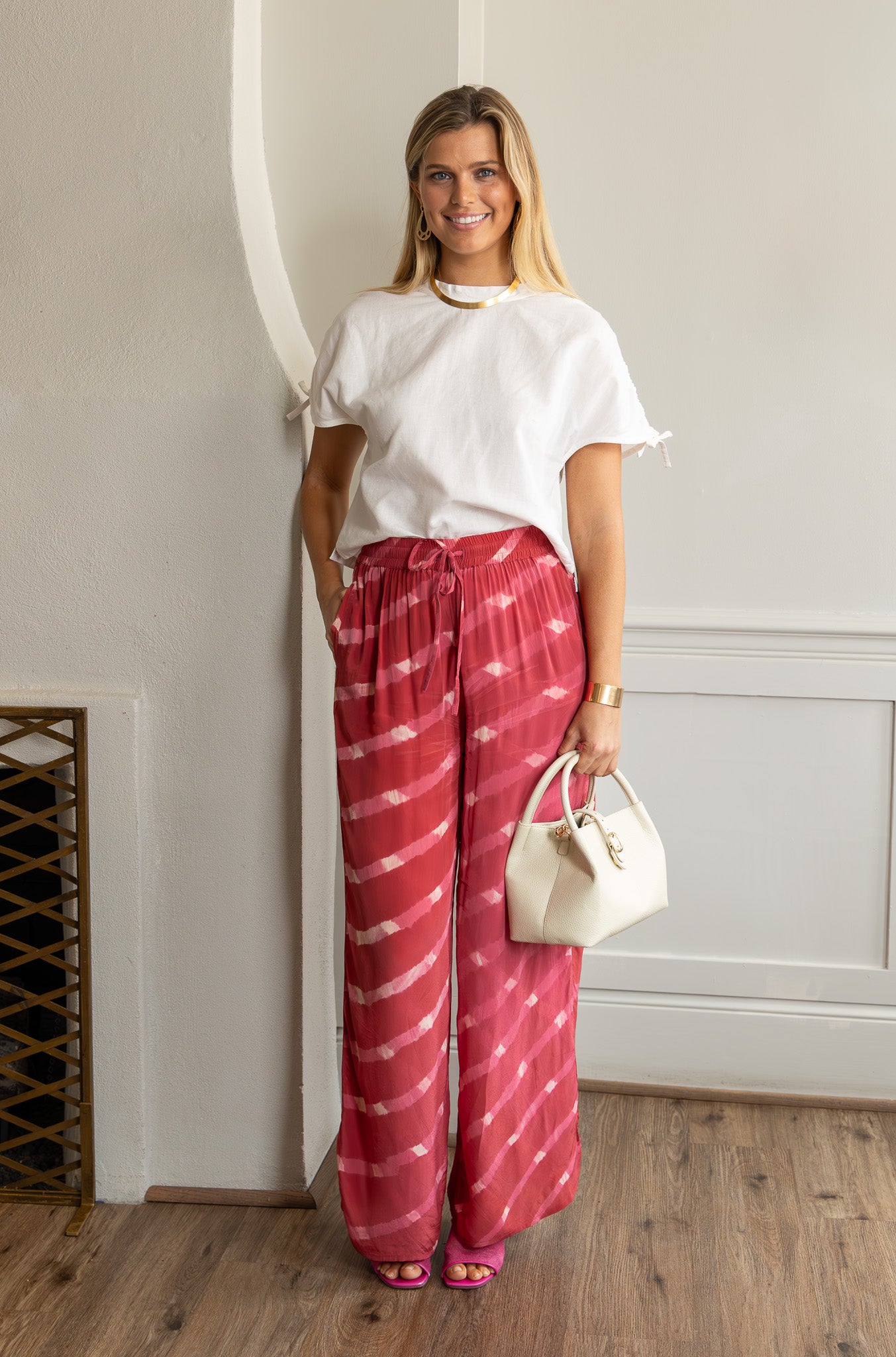 Aiden Wide Leg Trouser in Raspberry Tie Dye by ExVoto