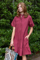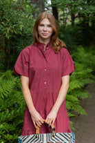 STYLE TIP: The Val Mini Dress is a playful style offered in a short but modest length! The short sleeve length provides a balanced silhouette, while the front button-down detail adds a classic touch. Whether you're dressing up for a casual outing or down for a relaxed day, this dress offers versatility and charm. The flowy cut ensures ease of movement while the breathable, soft cotton makes it an ideal choice for all-day wear!