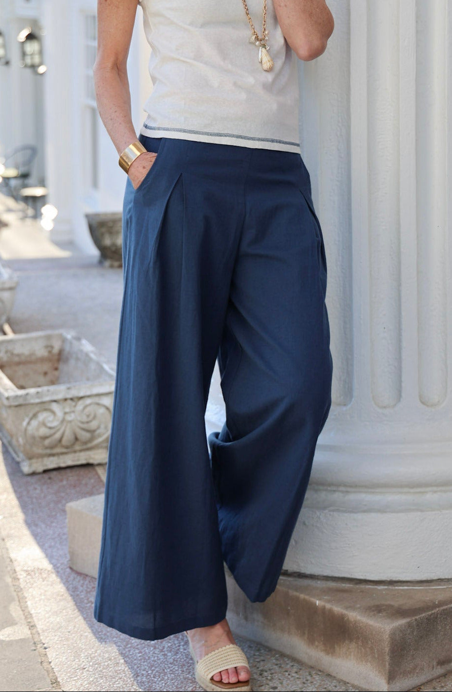 Hayley Linen Pant in Navy by ExVoto