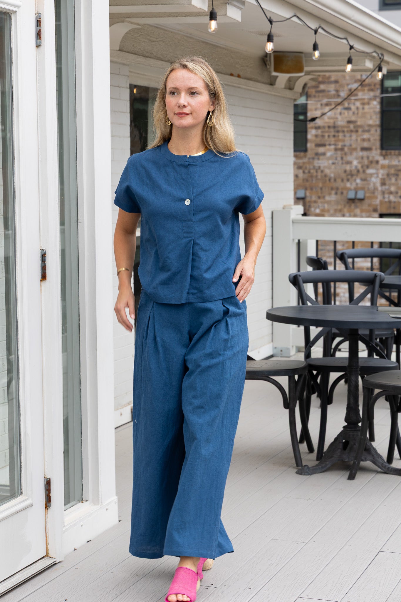 STYLE TIP: The Hayley Linen Pant will be a closet staple in your Spring and Summer wardrobe! The pleating detail creates a sharp and finished look while the wide leg creates flow and movement while wearing. These pants pair back with many of our blouses and tops but we especially love them with the Anna Linen Blouse for a polished set! Wear with a sandal while on vacation for an effortless beach look or with a wedge to dinner to elevate the relaxed nature of the style!