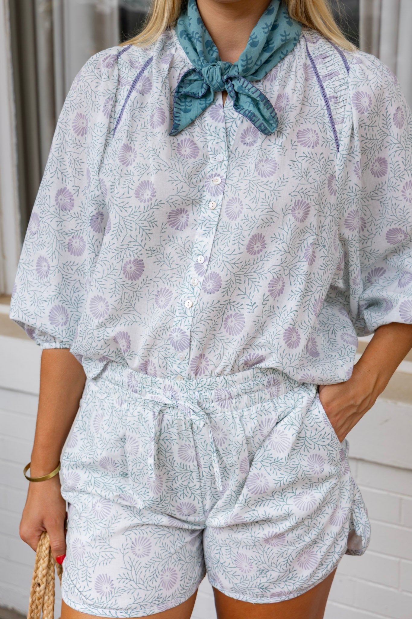 STYLE TIP: These shorts feature an elastic waist with a tie string detail for enhanced comfort. Suitable for casual outings or beach days, they can be paired with the Greta Blouse in a matching blockprint or styled with leather sandals for a polished look.