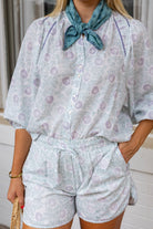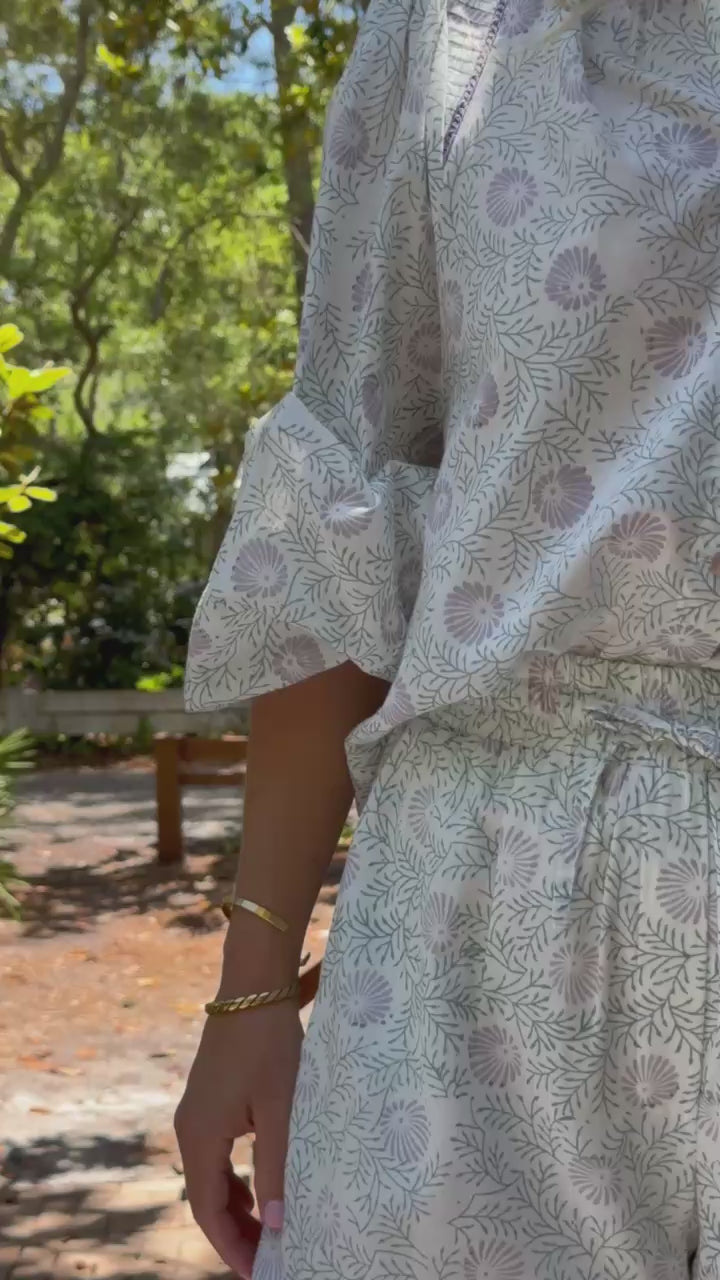 Aiden Shorts in Lavender & Mineral Blue Blockprint by ExVoto
