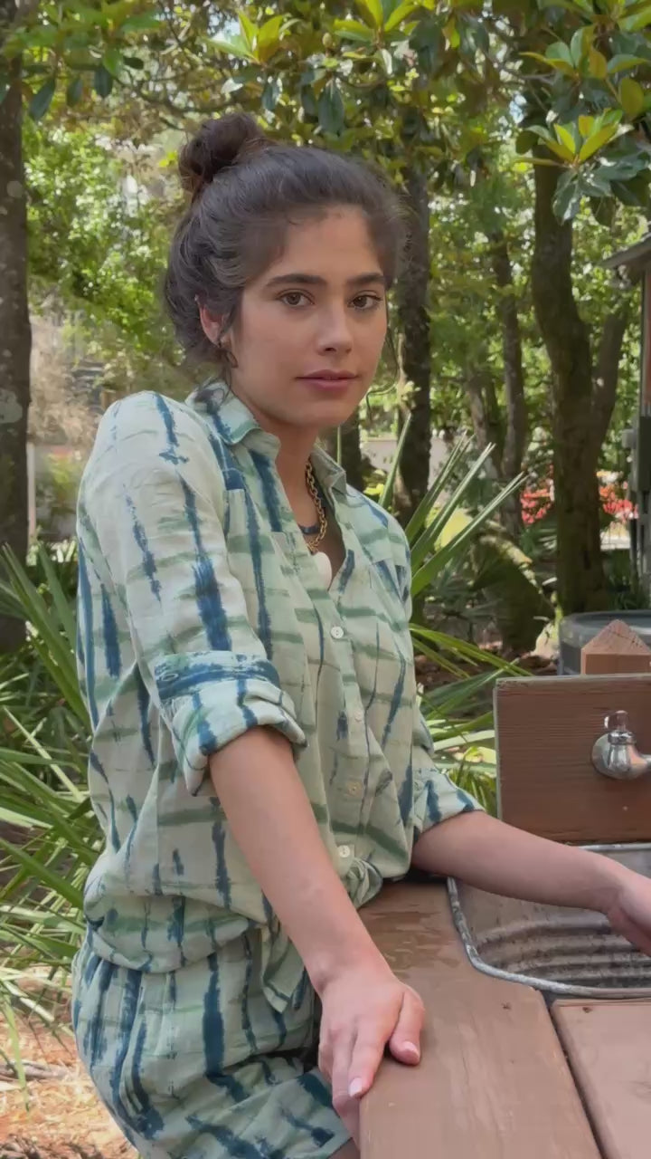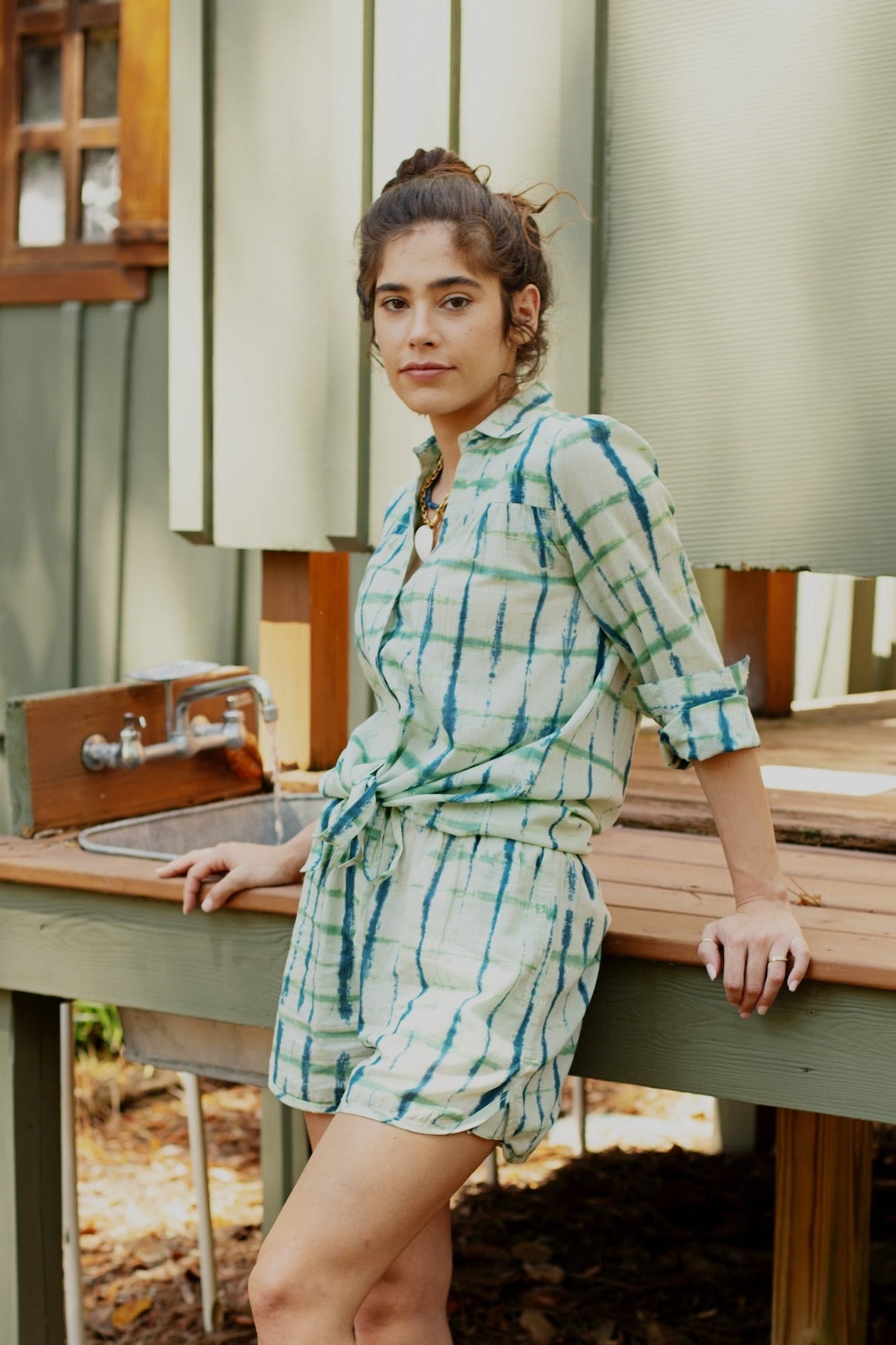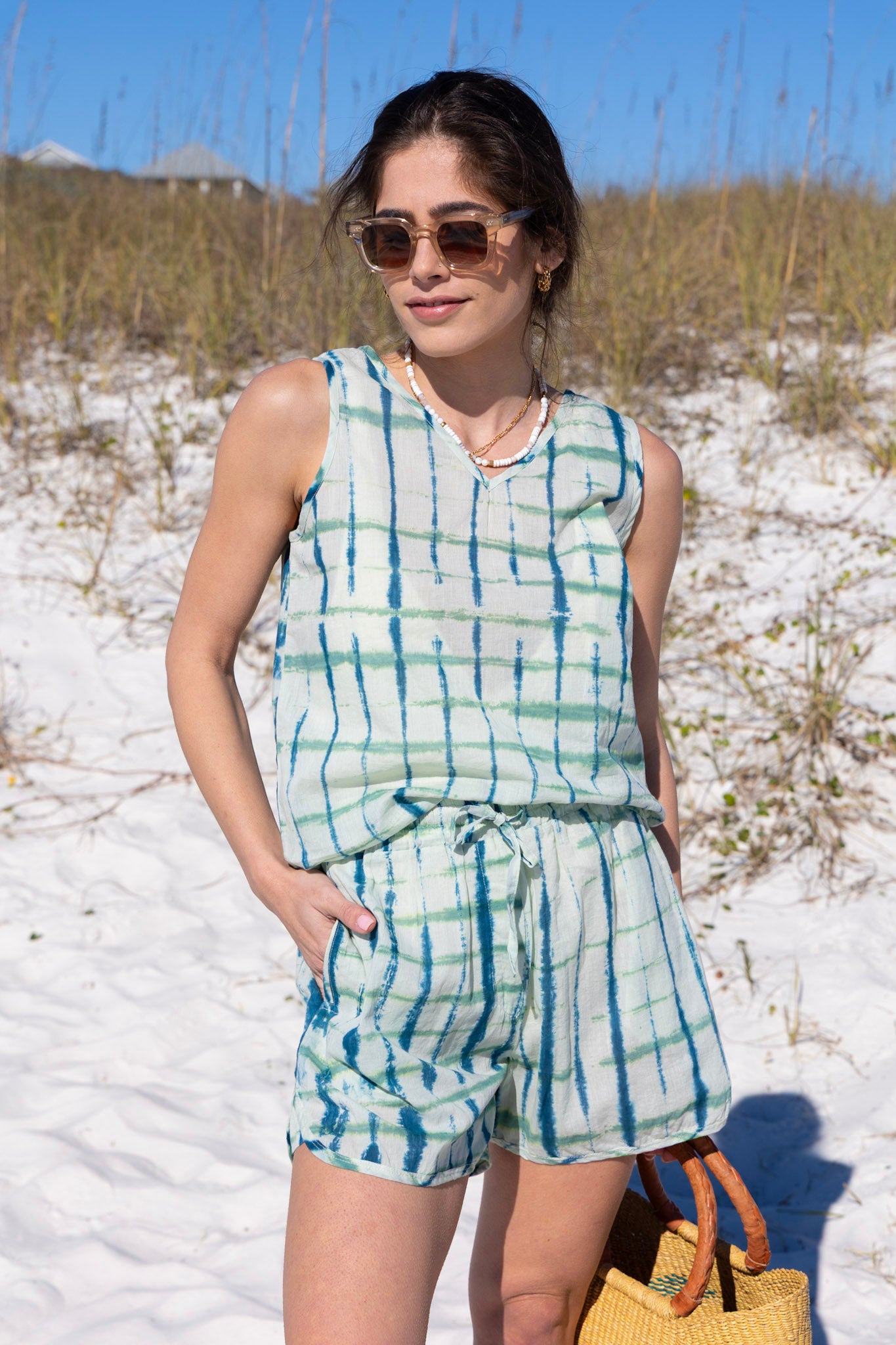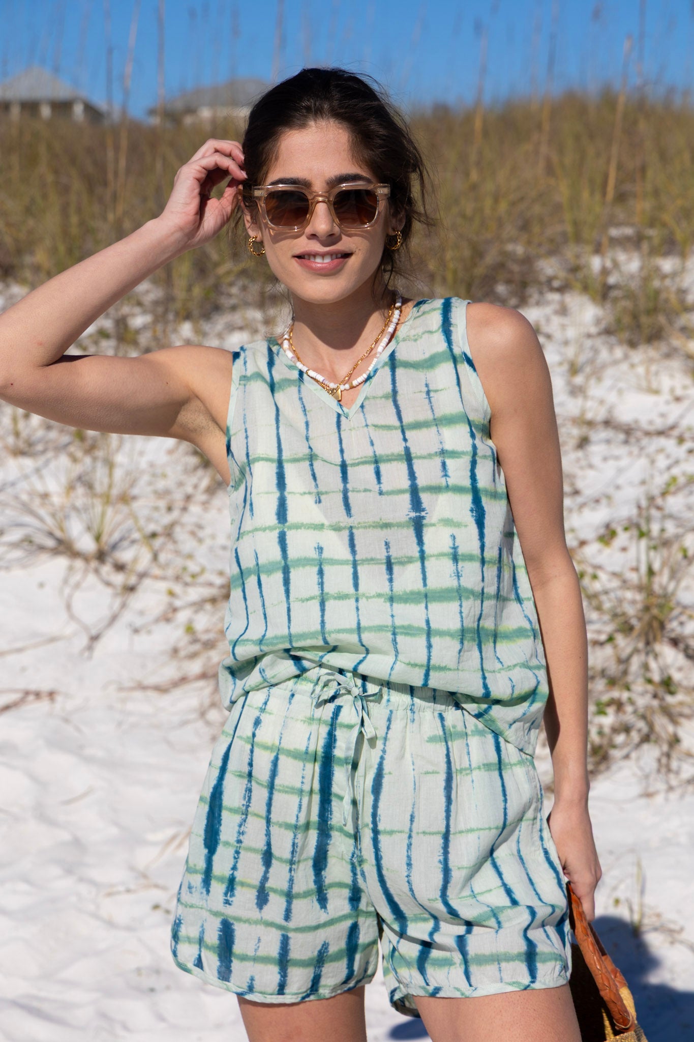 STYLE TIP: The Aiden Shorts in Smoke Green & Teal Tie Dye are soft and comfortable shorts with an elastic waistband and drawstring. Perfect for casual days at the beach or running errands. Pair with the Ari Blouse or Isla Tanktop for a coordinated look, or dress up with leather sandals for a polished finish.