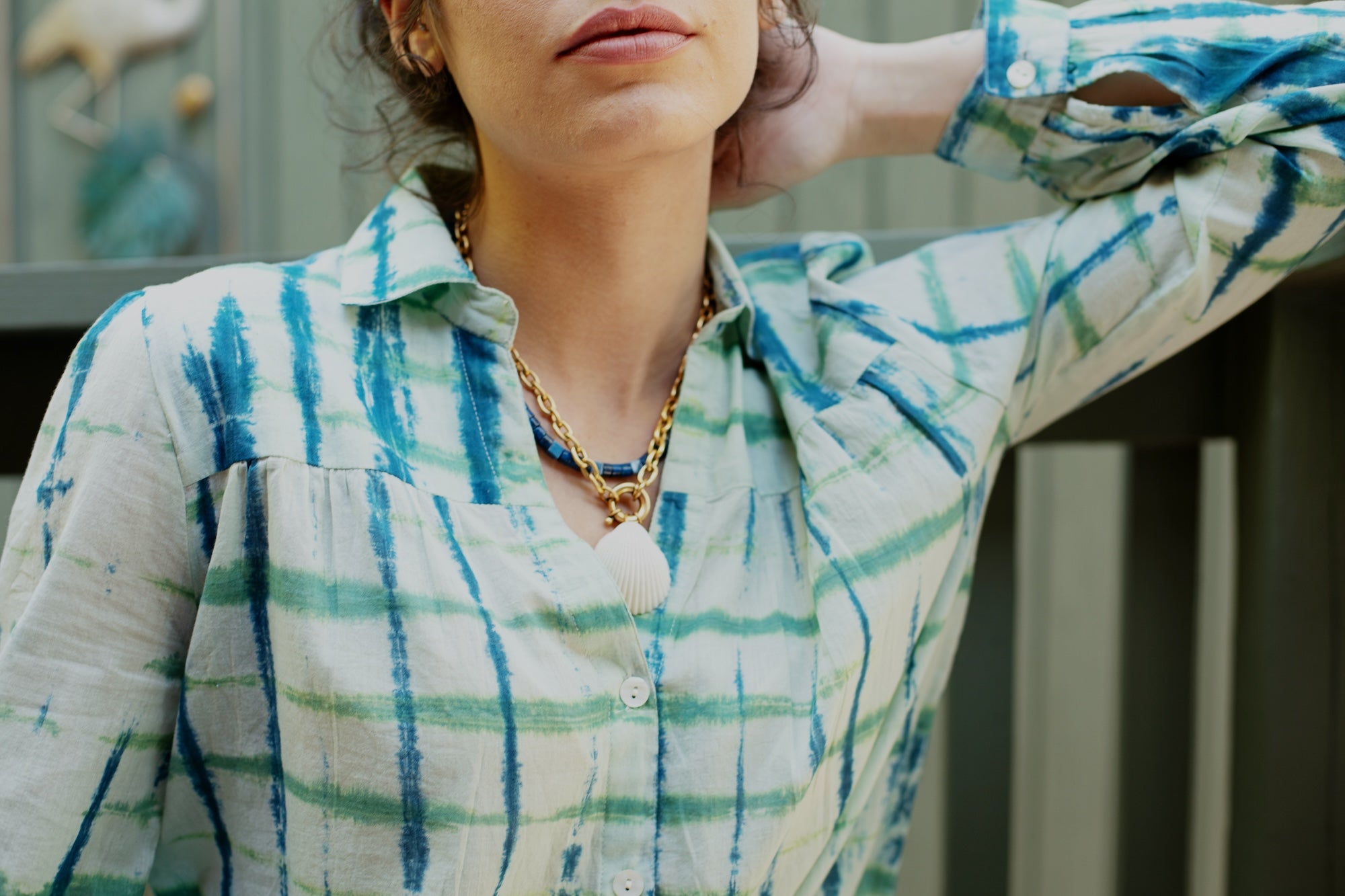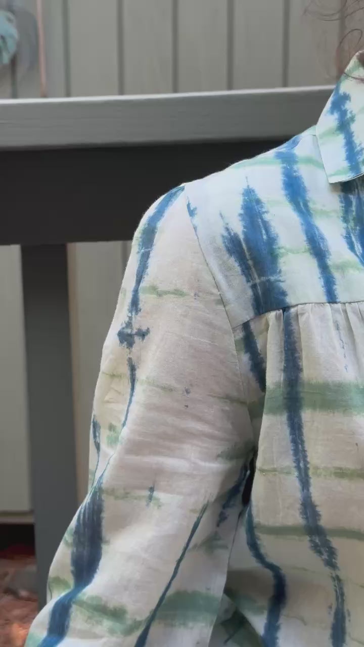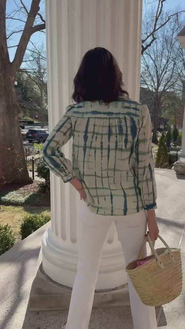 Ari Blouse in Smoke Green & Teal Tie Dye by ExVoto