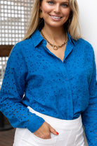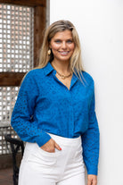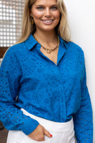 Daphne Eyelet Blouse in Cobalt Blue by ExVoto
