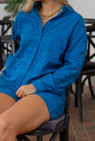 Daphne Eyelet Shorts in Cobalt Blue by ExVoto