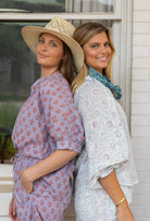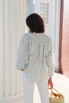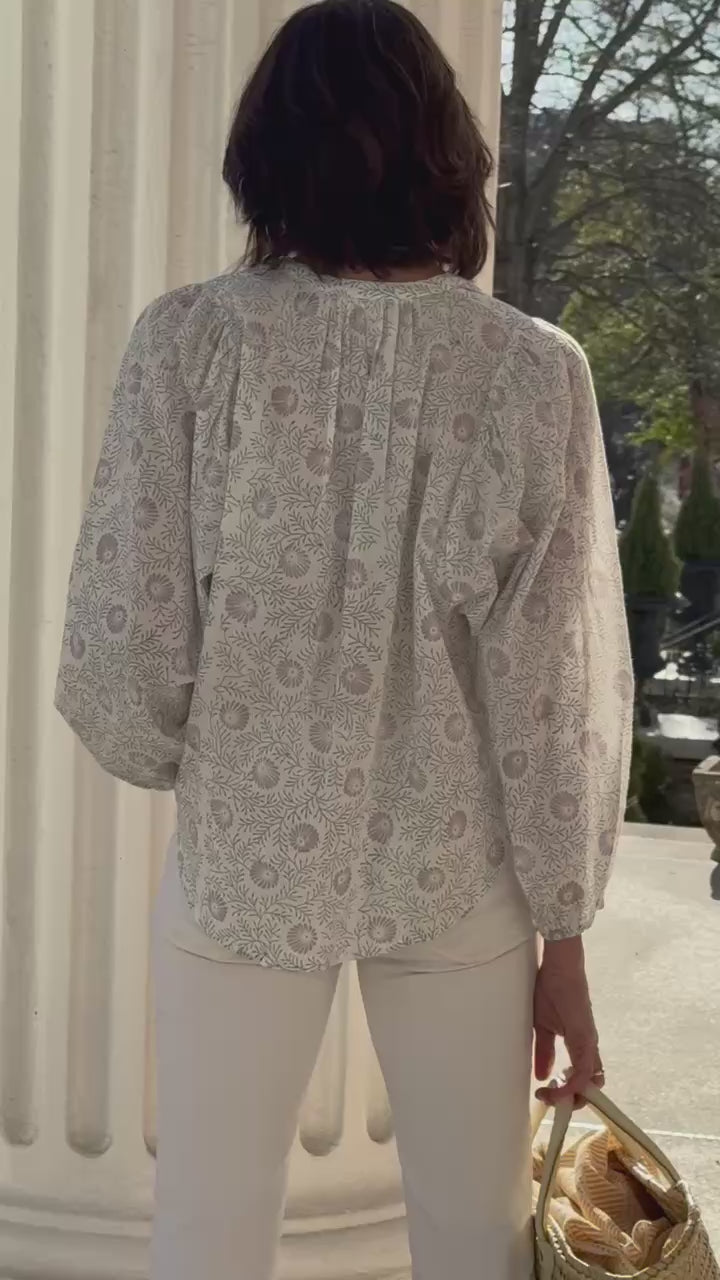 Greta Blouse in Lavender & Mineral Blue Blockprint by ExVoto