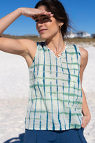 Isla Tank Top in Smoke Green & Teal Tie Dye by ExVoto
