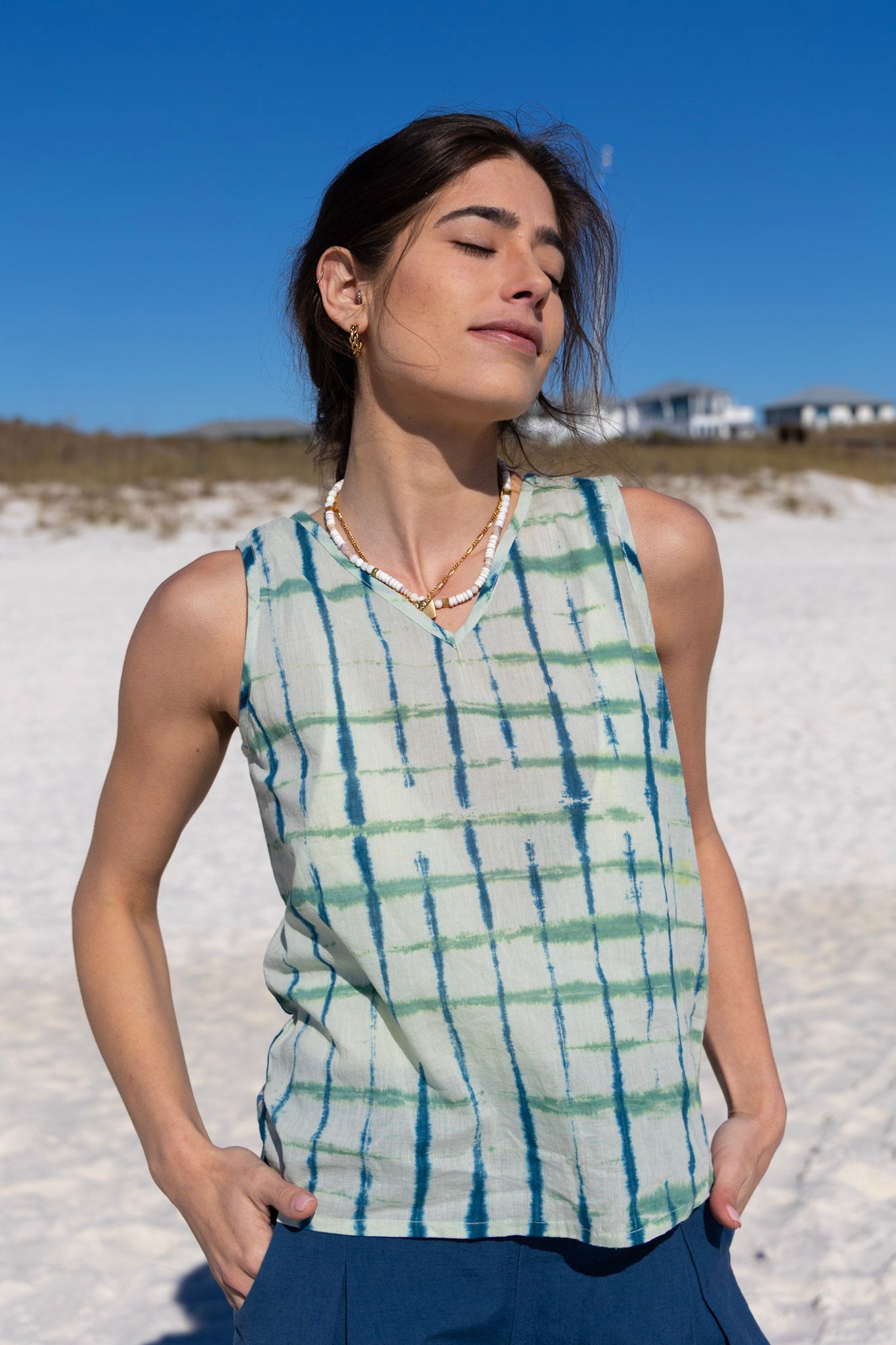 STYLE TIP: The Isla Tank Top is light and breathable for everyday wear without being sheer. For a matching set, style it with the Aiden Skirt or Aiden Shorts. It also pairs beautifully with denim or our Hayley Linen Pant. Each piece is uniquely tie-dyed by hand, making it one of a kind.