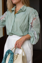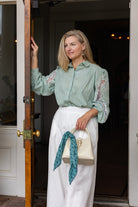 Susan Blouse with Lace Embroidery in Smoke Green by ExVoto