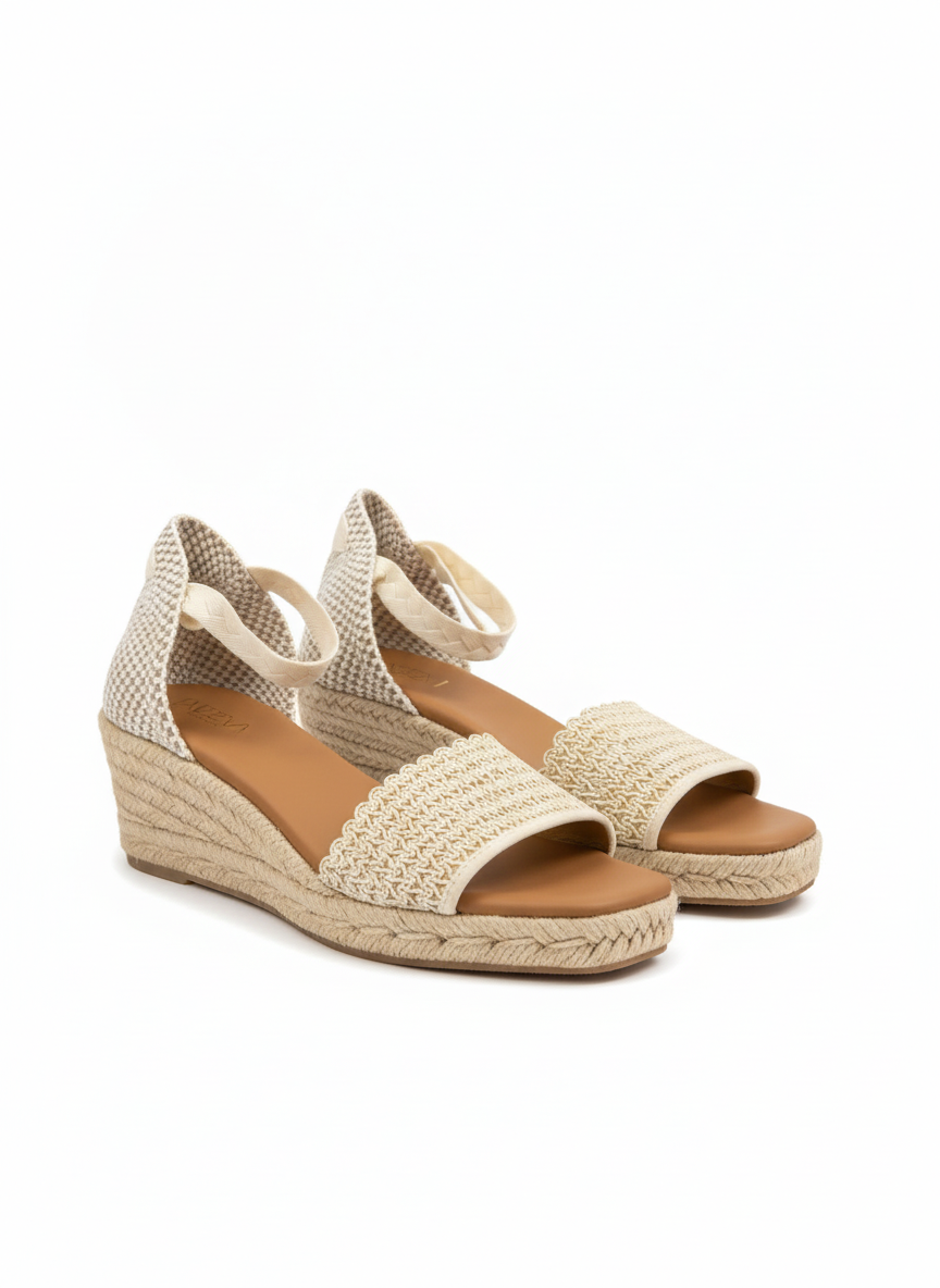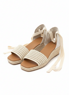 Step into comfort with this charming espadrille sandal featuring a subtle wedge heel and Featuring woven ankle straps with an adjustable tie wrap design, this espadrille sandal delivers effortless comfort and laid-back style for sunny seasons. The supportive construction keeps your feet secure while maintaining that breezy, casual aesthetic perfect for warm days.