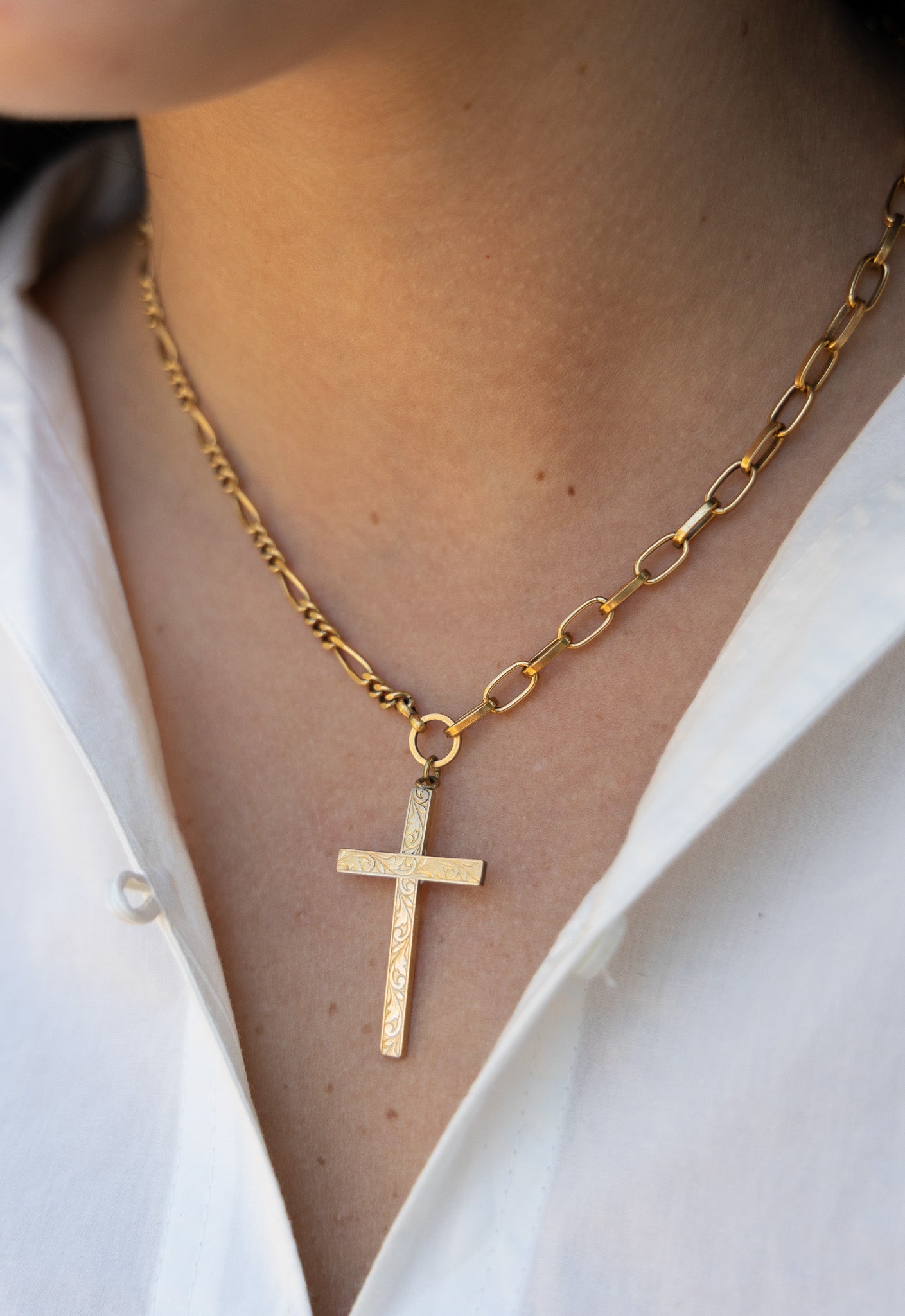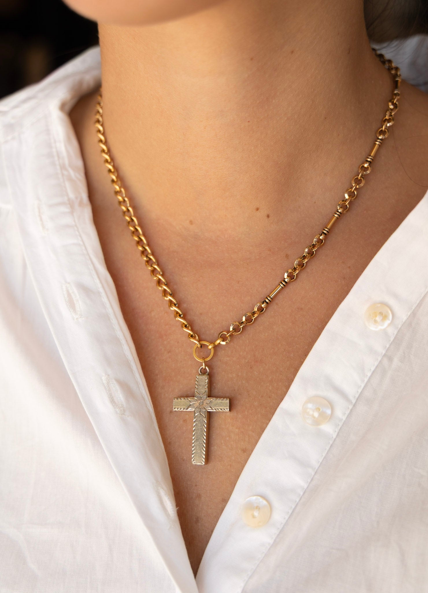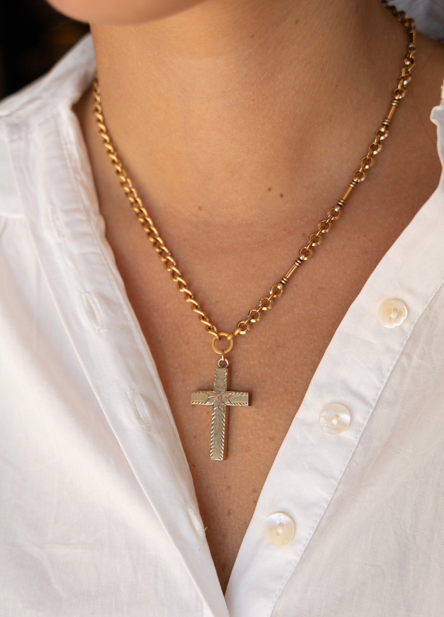 One of One #1504 :: 18" Vintage Katy Necklace with Etched Cross