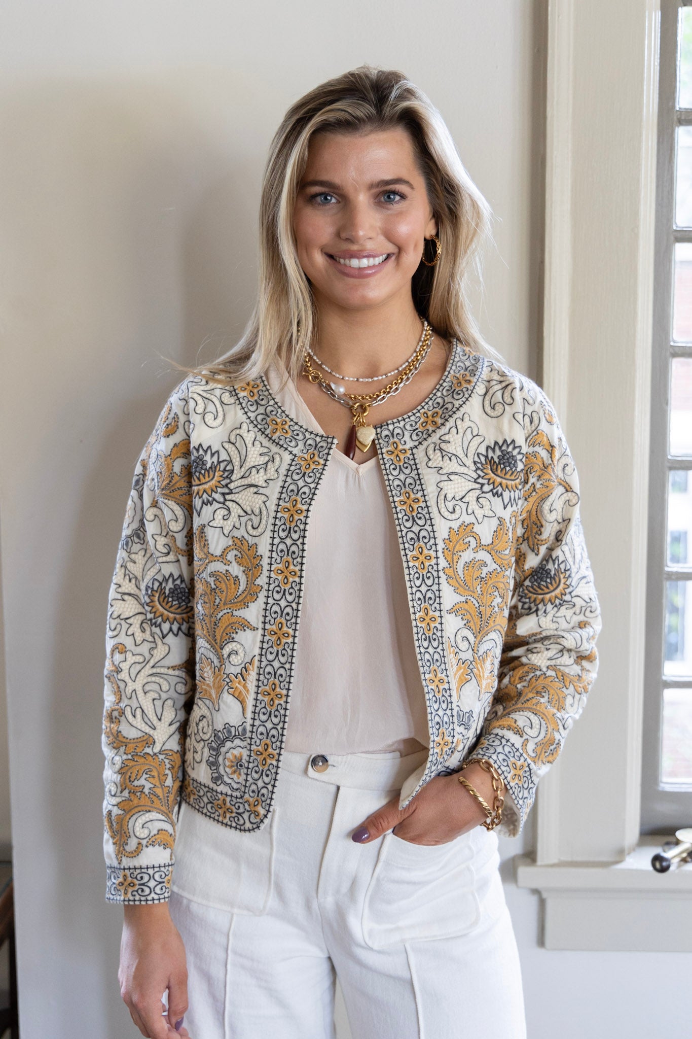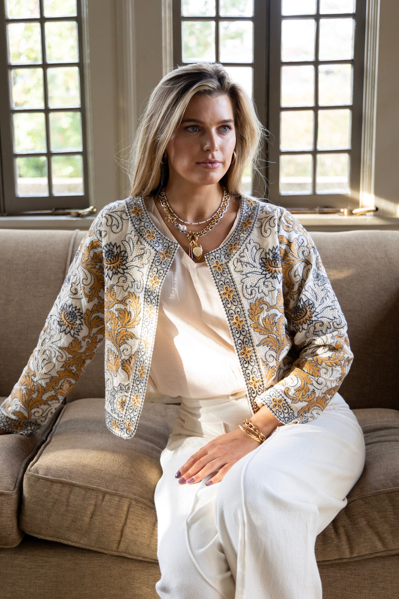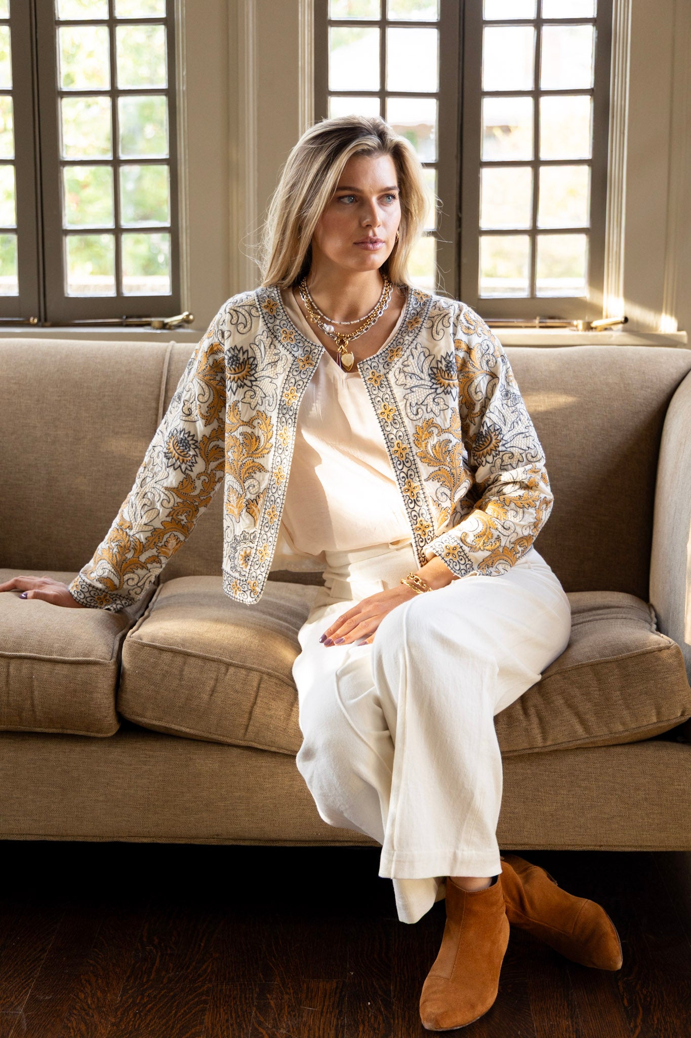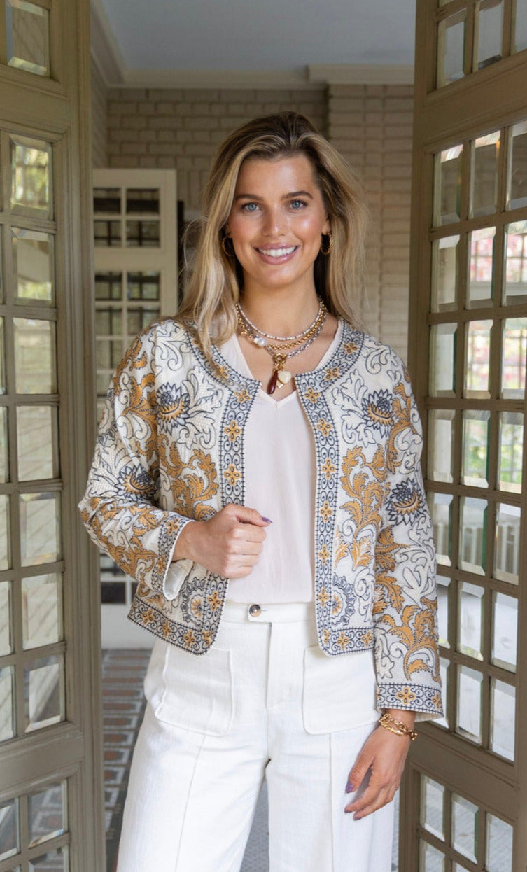 Alice Embroidered Jacket in Sand Dollar by ExVoto