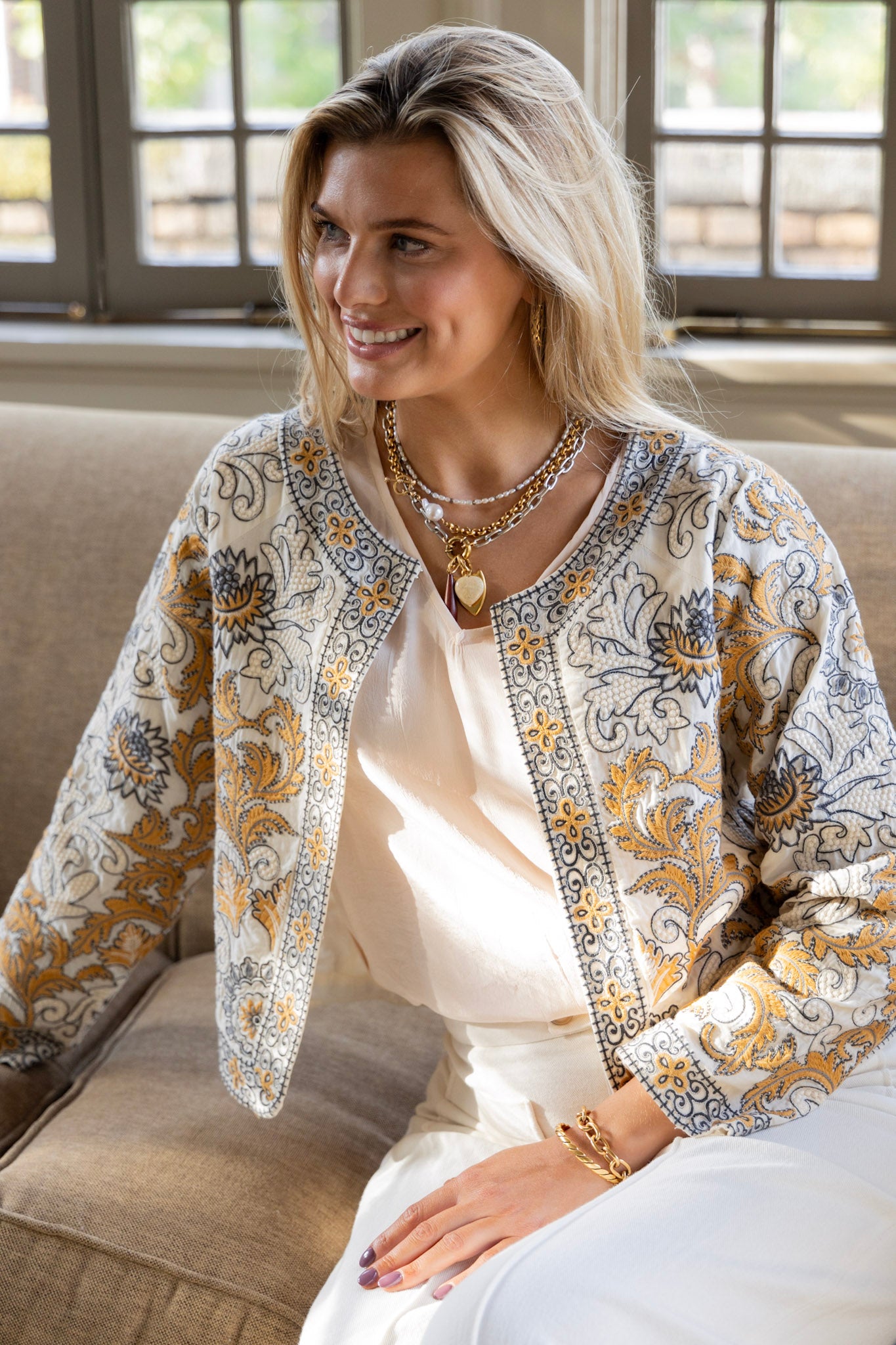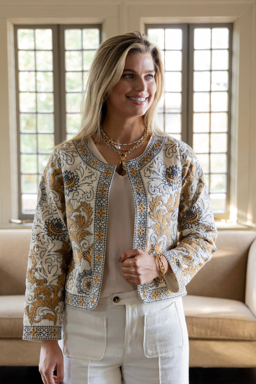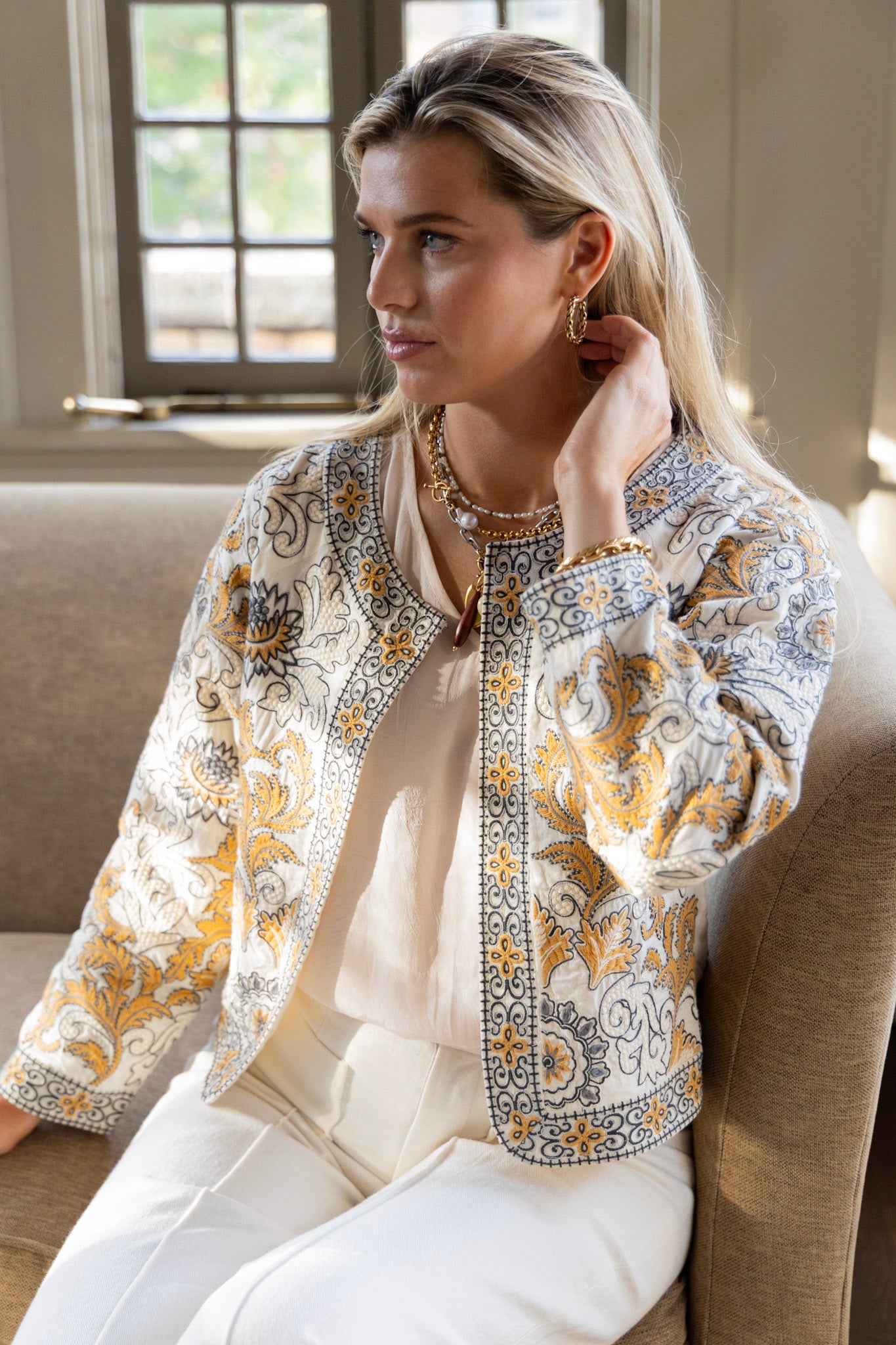 Alice Embroidered Jacket in Sand Dollar by ExVoto