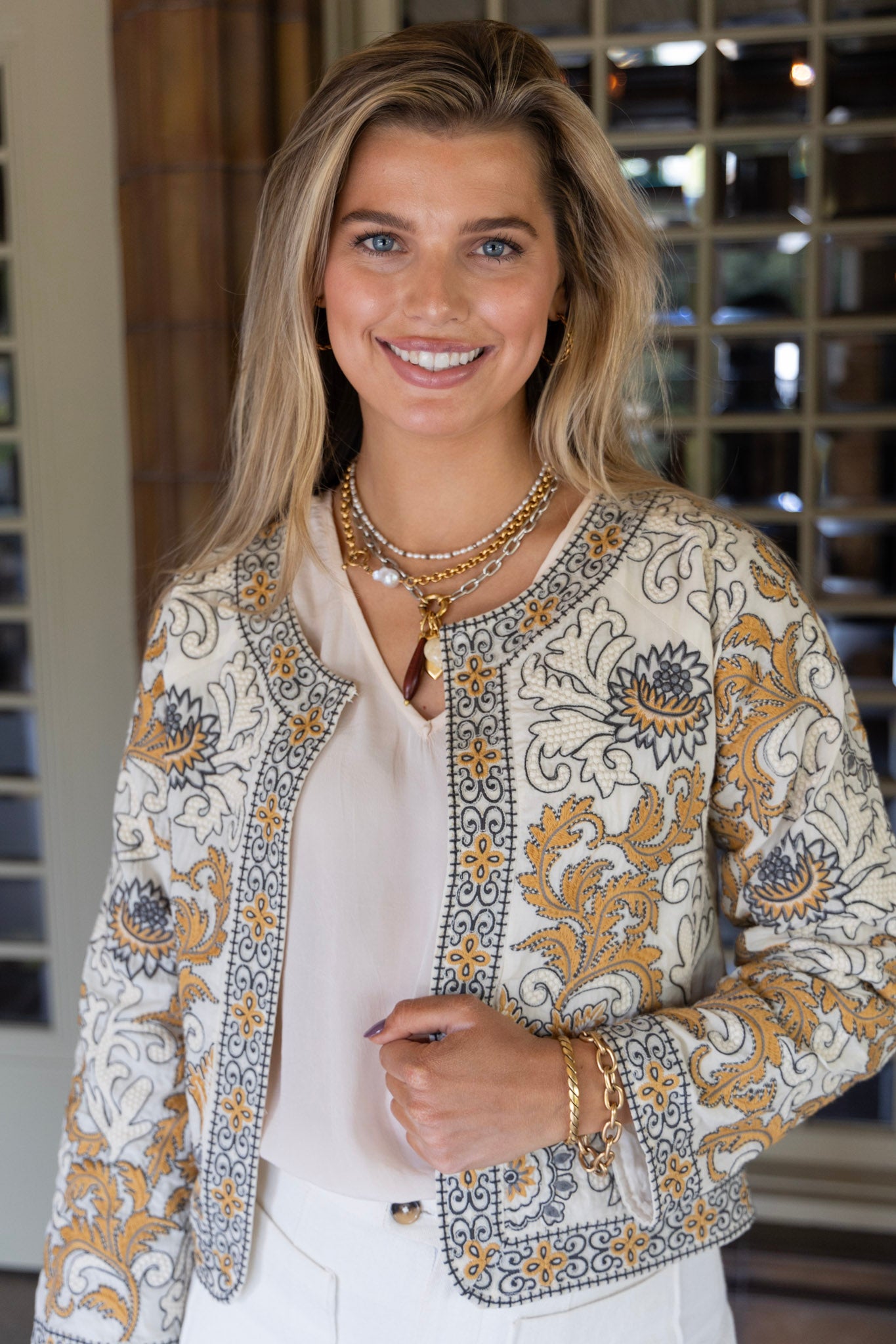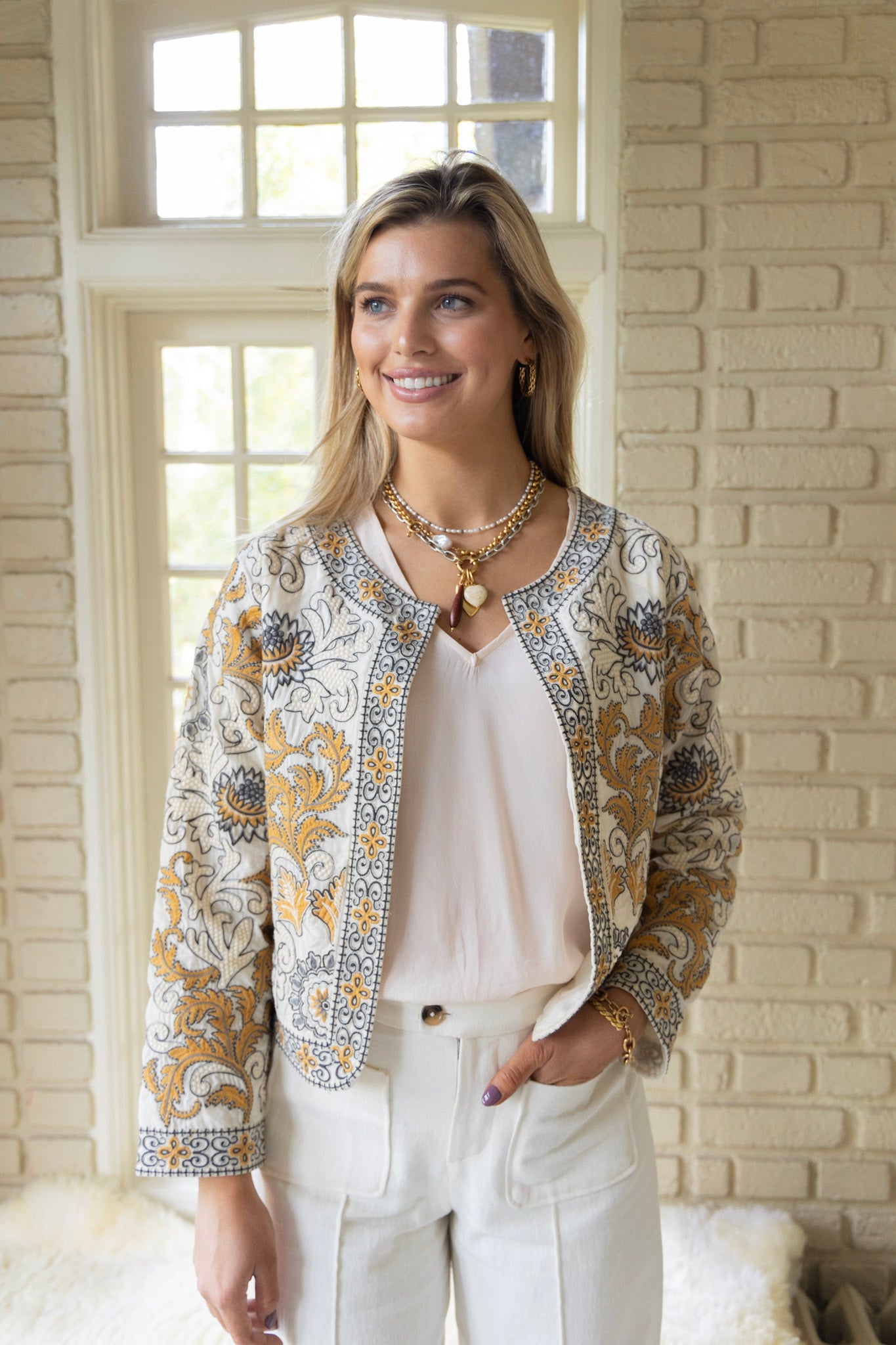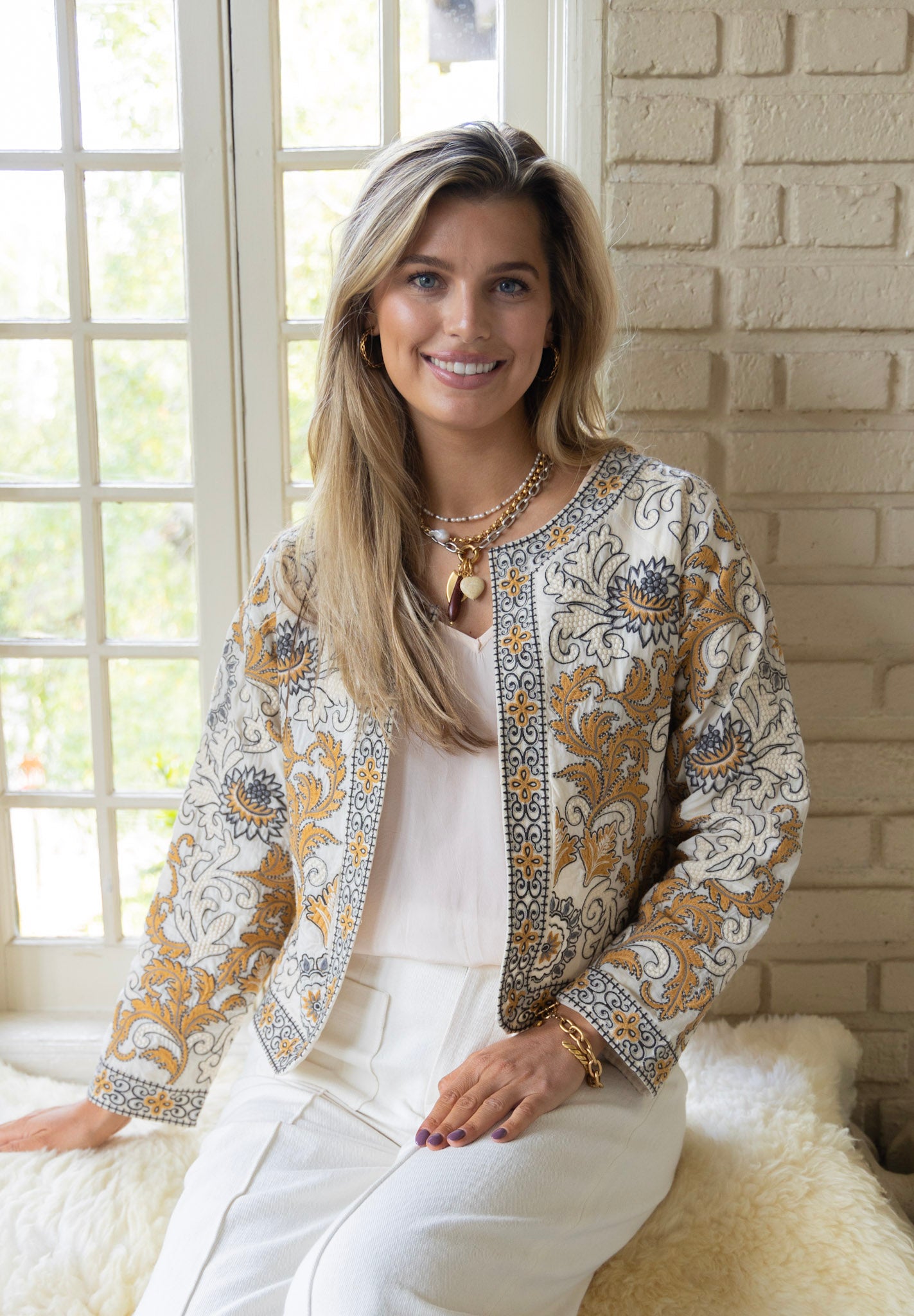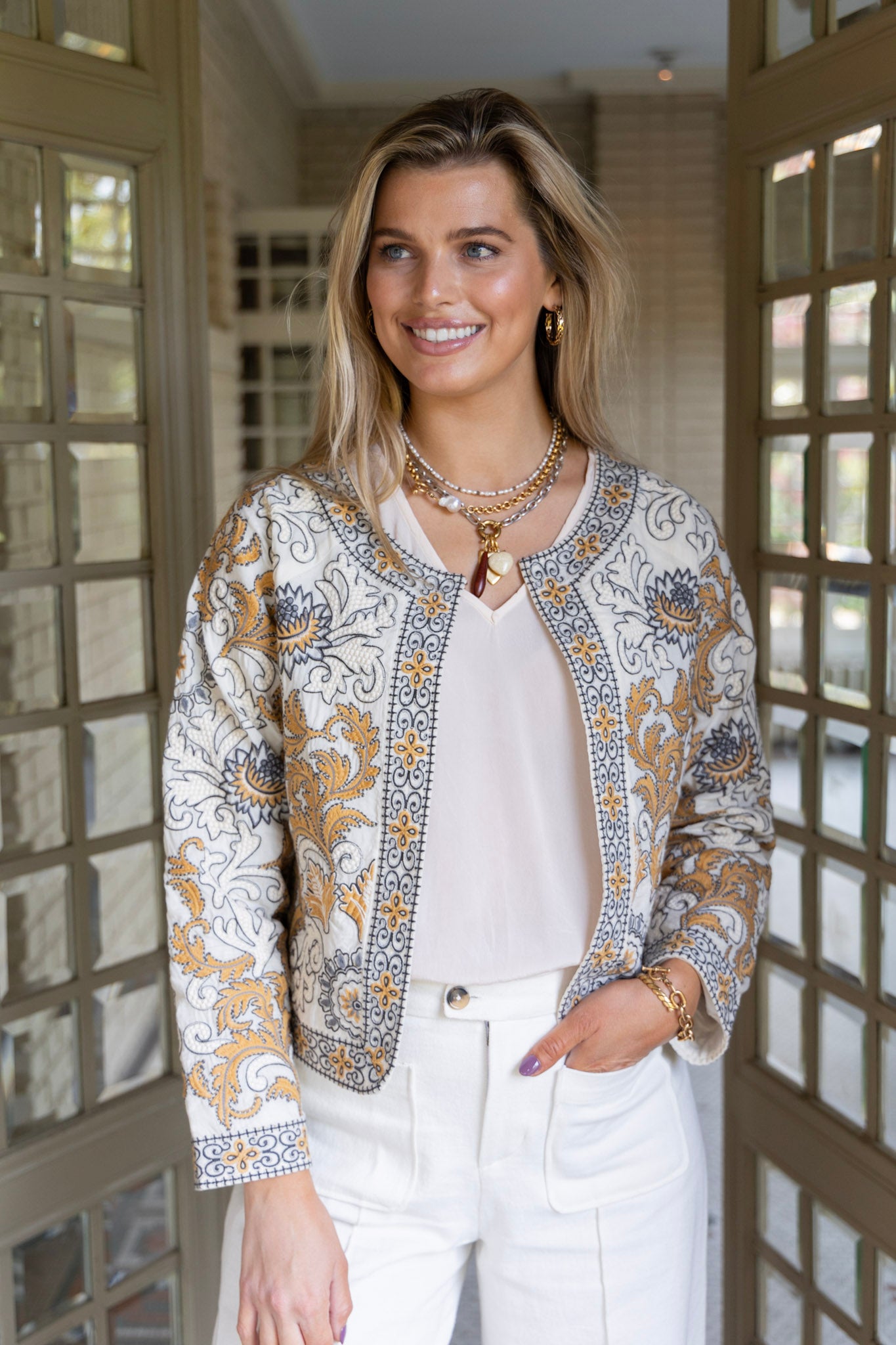 Alice Embroidered Jacket in Sand Dollar by ExVoto