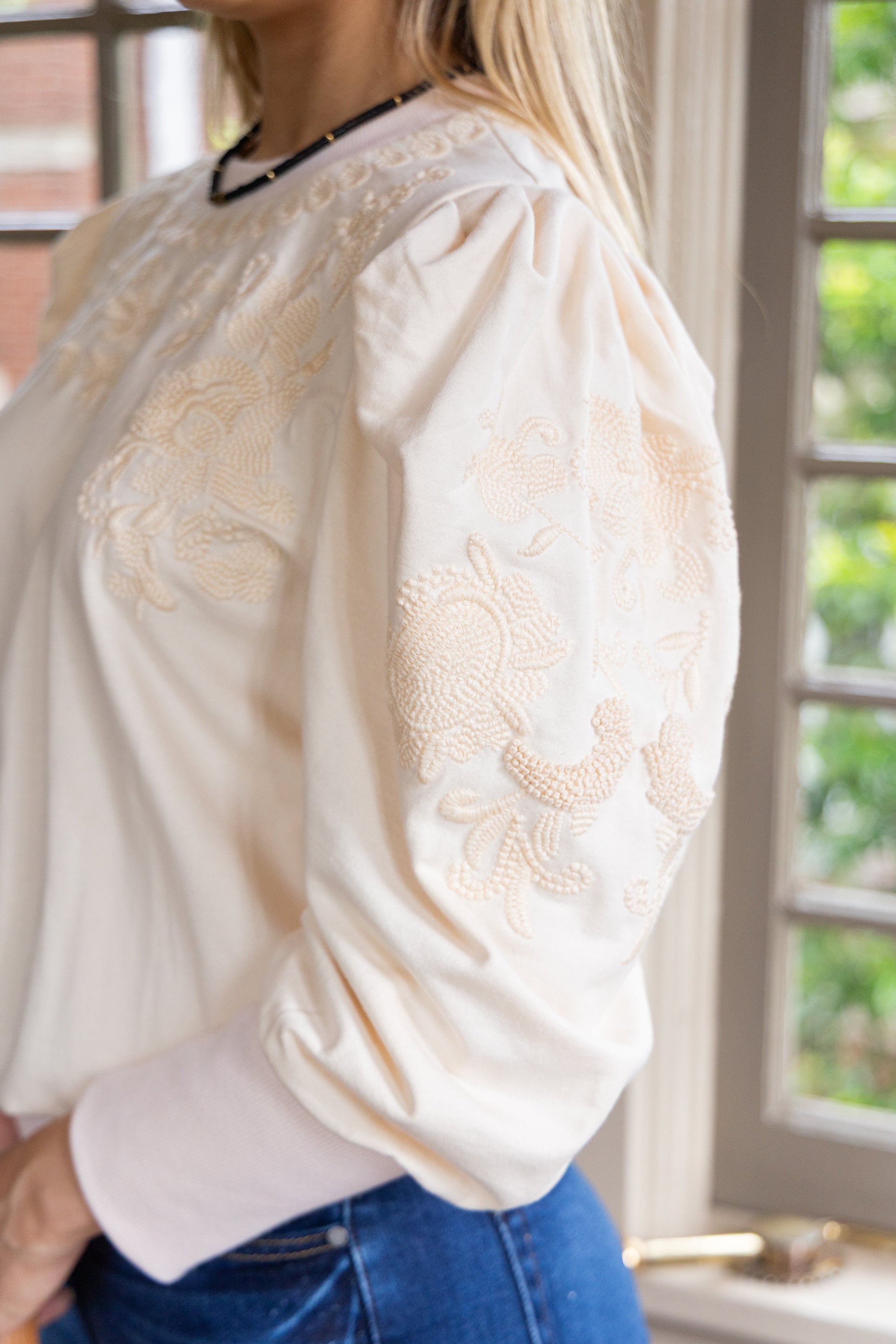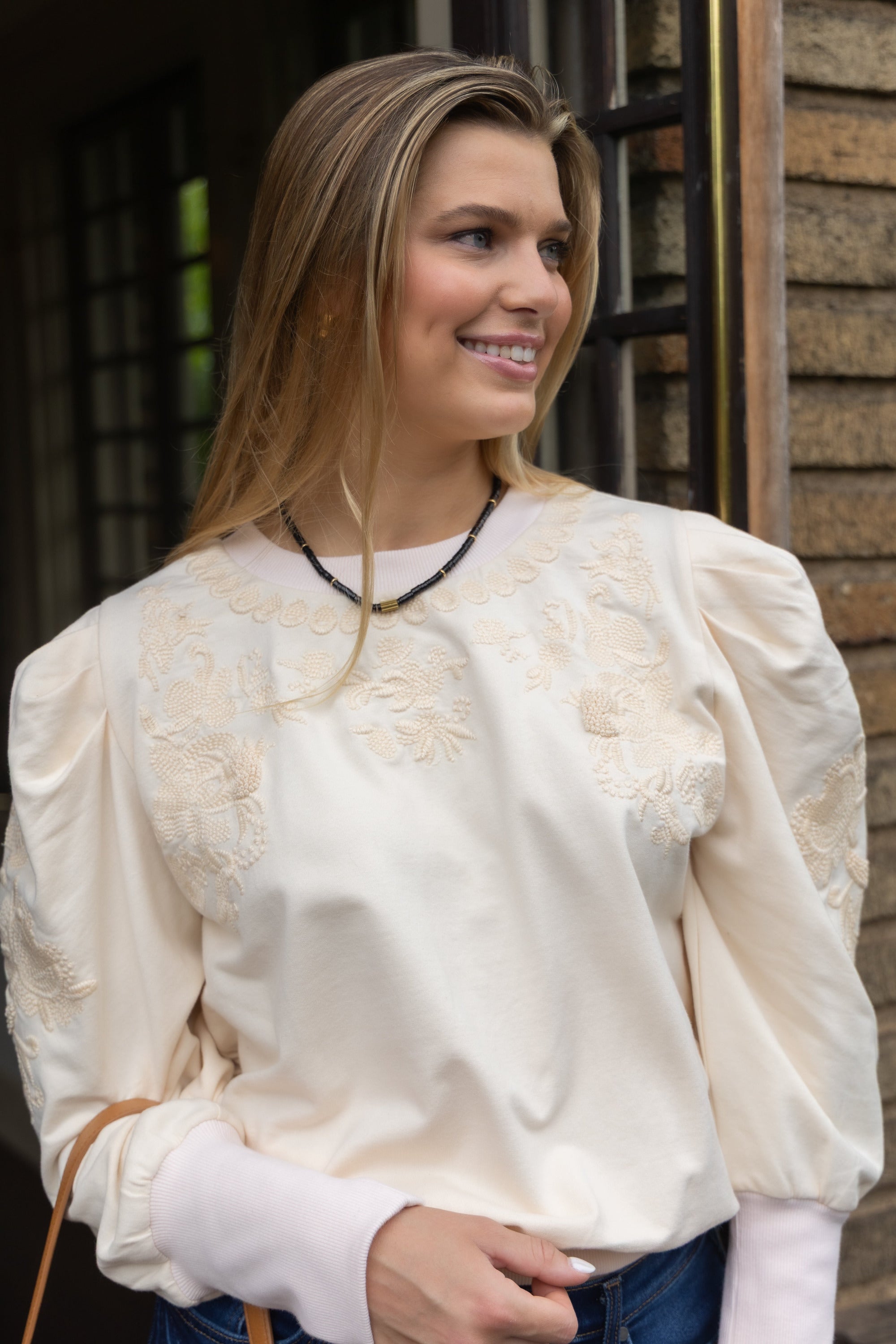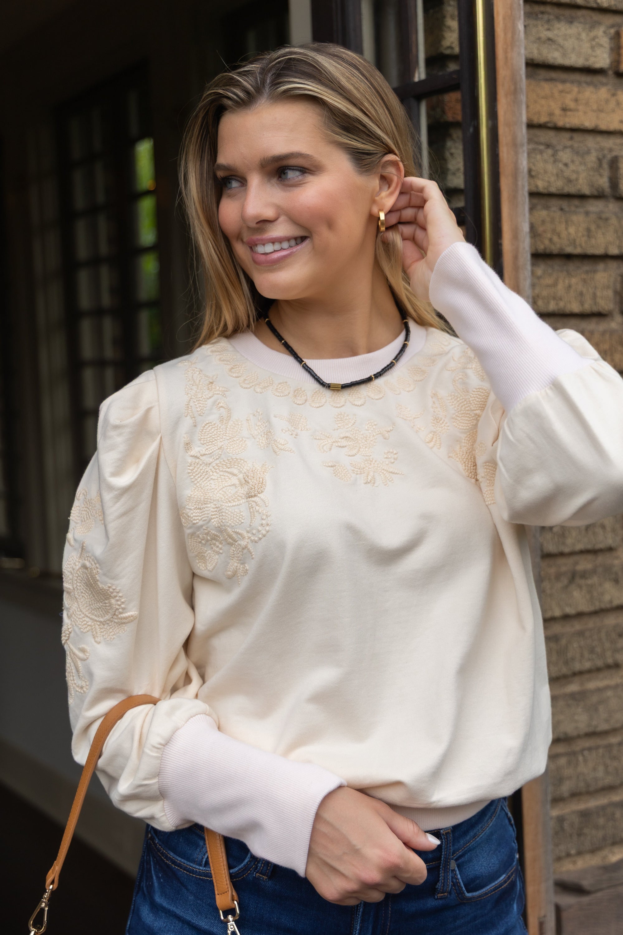 Ruthie Embroidered Sweatshirt in Ivory by ExVoto