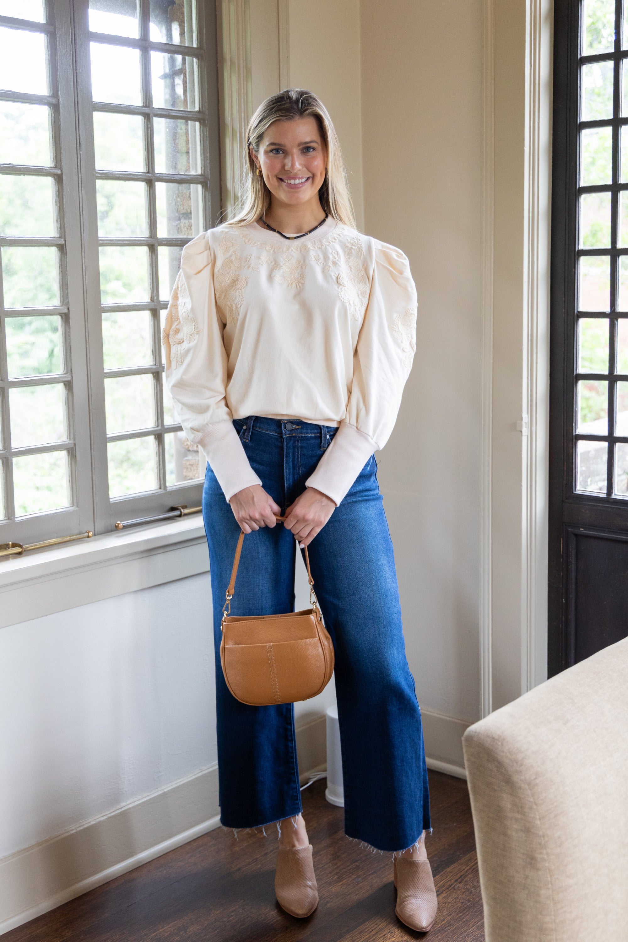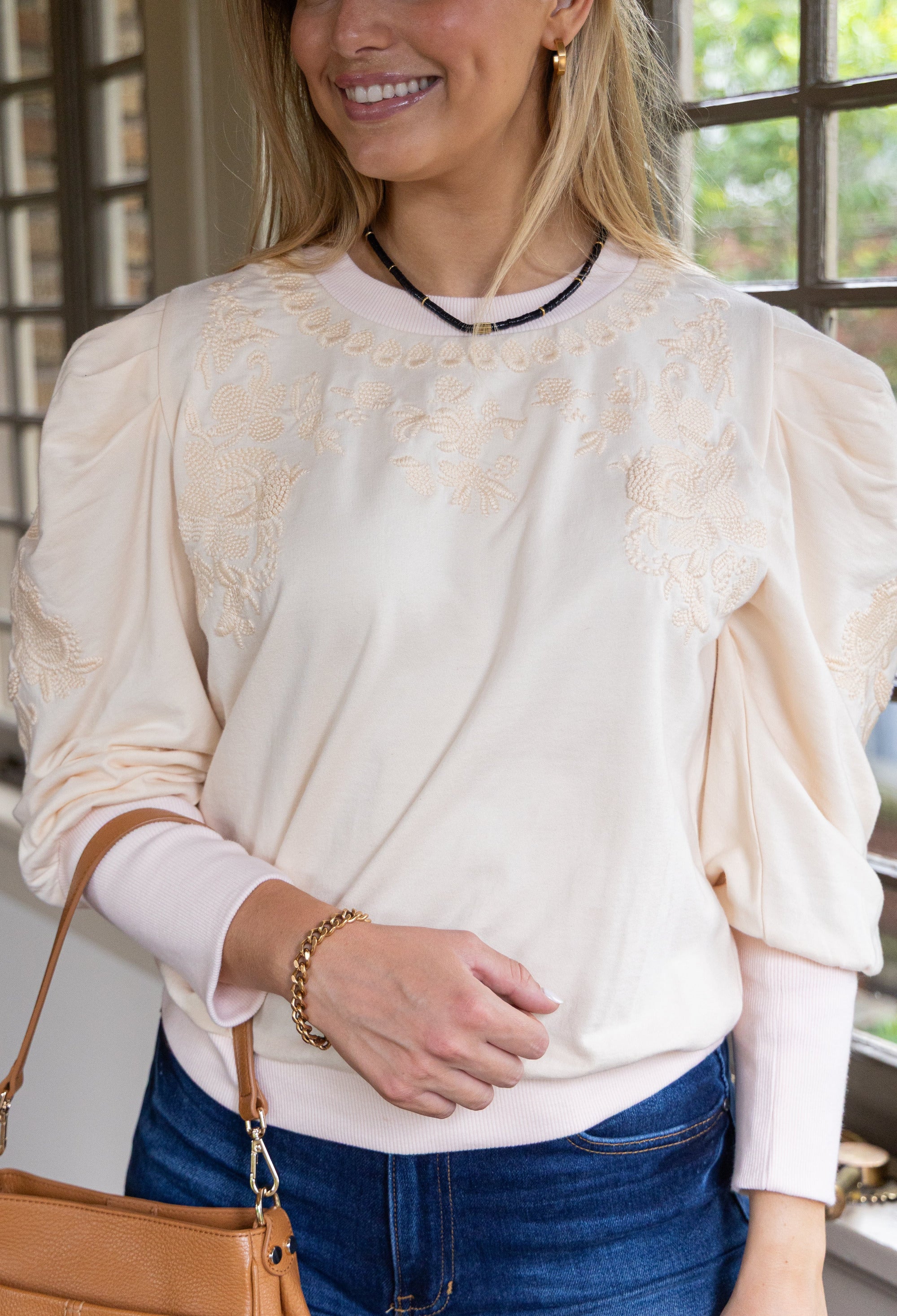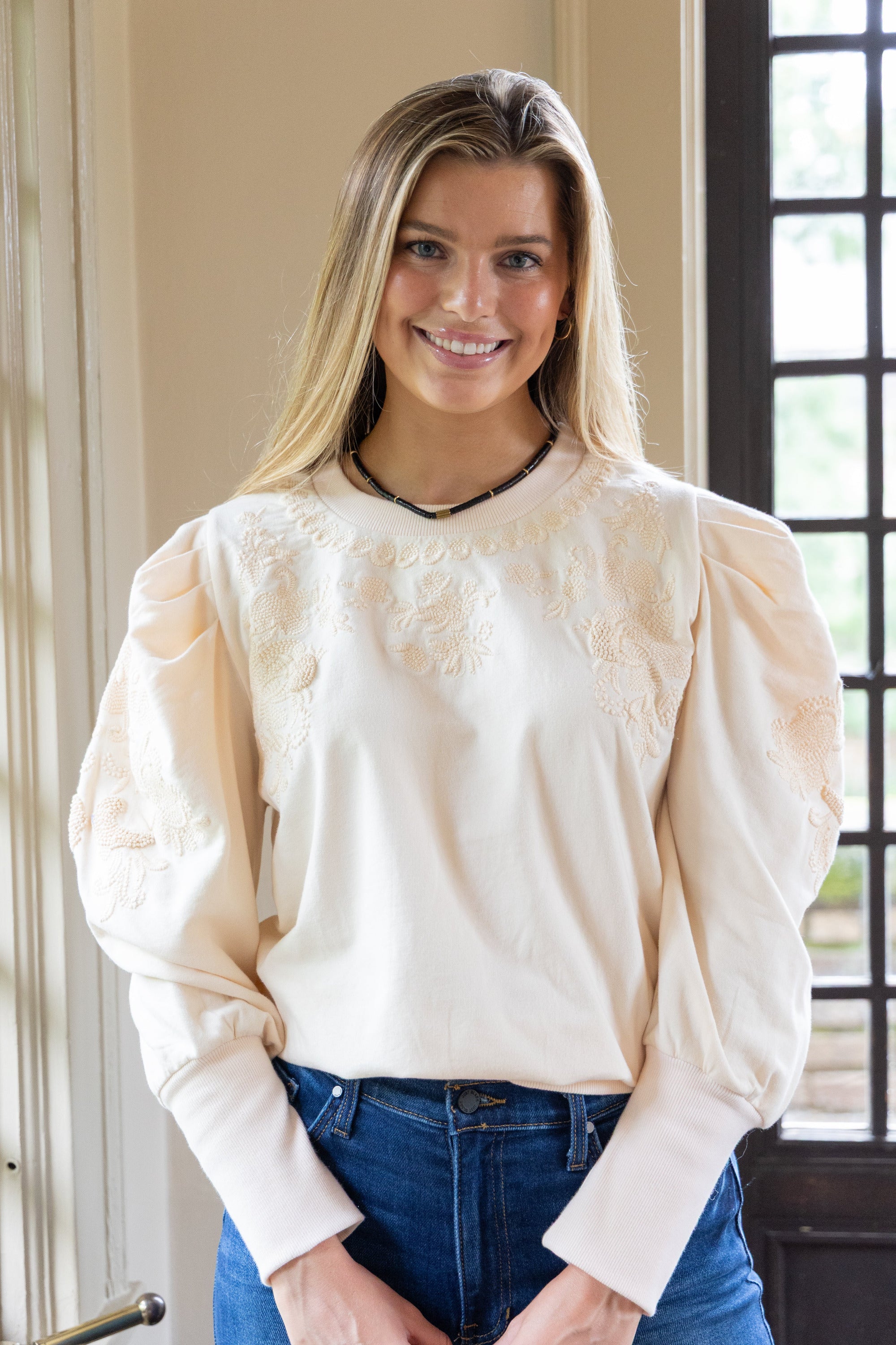 Ruthie Embroidered Sweatshirt in Ivory by ExVoto