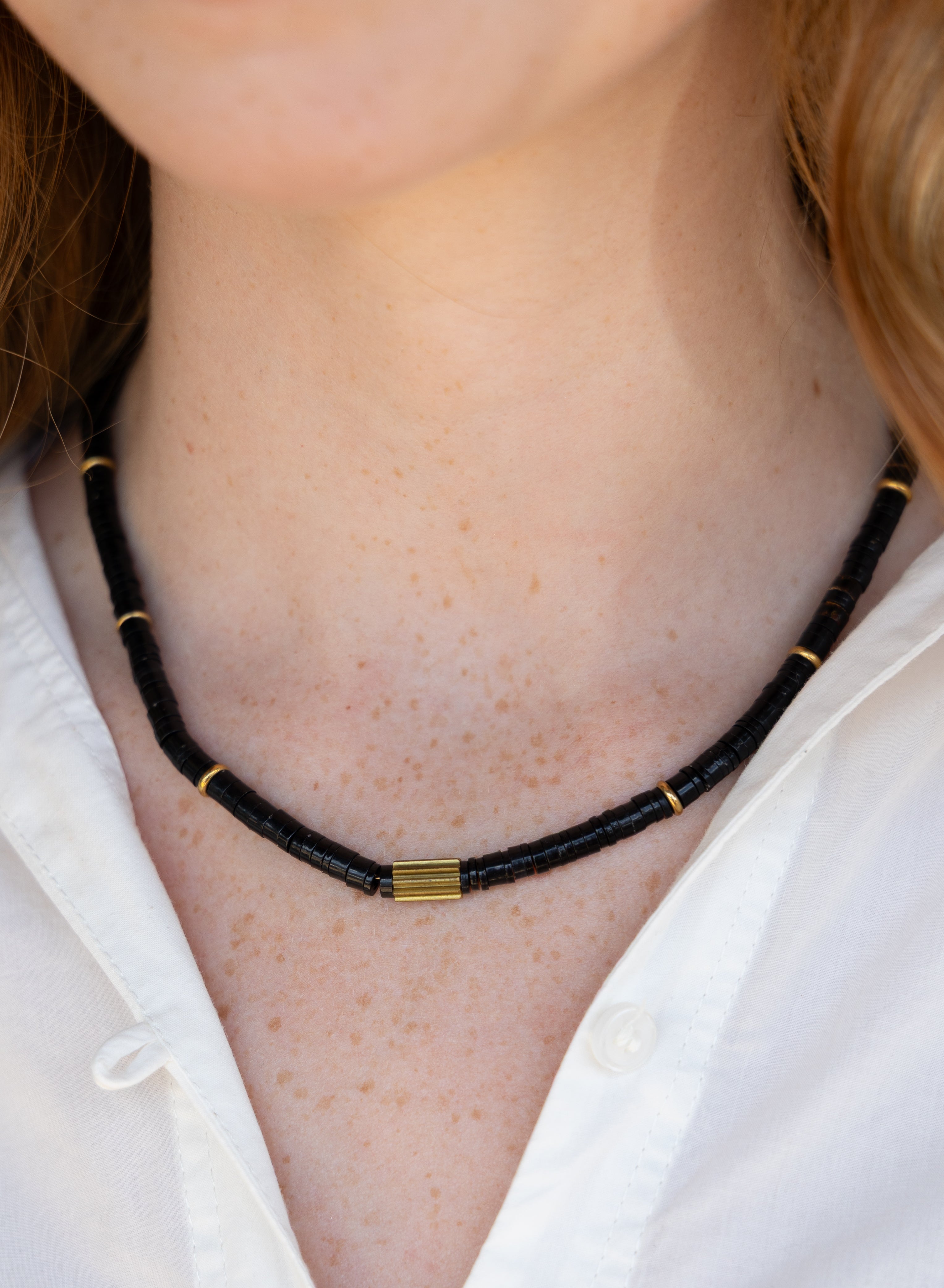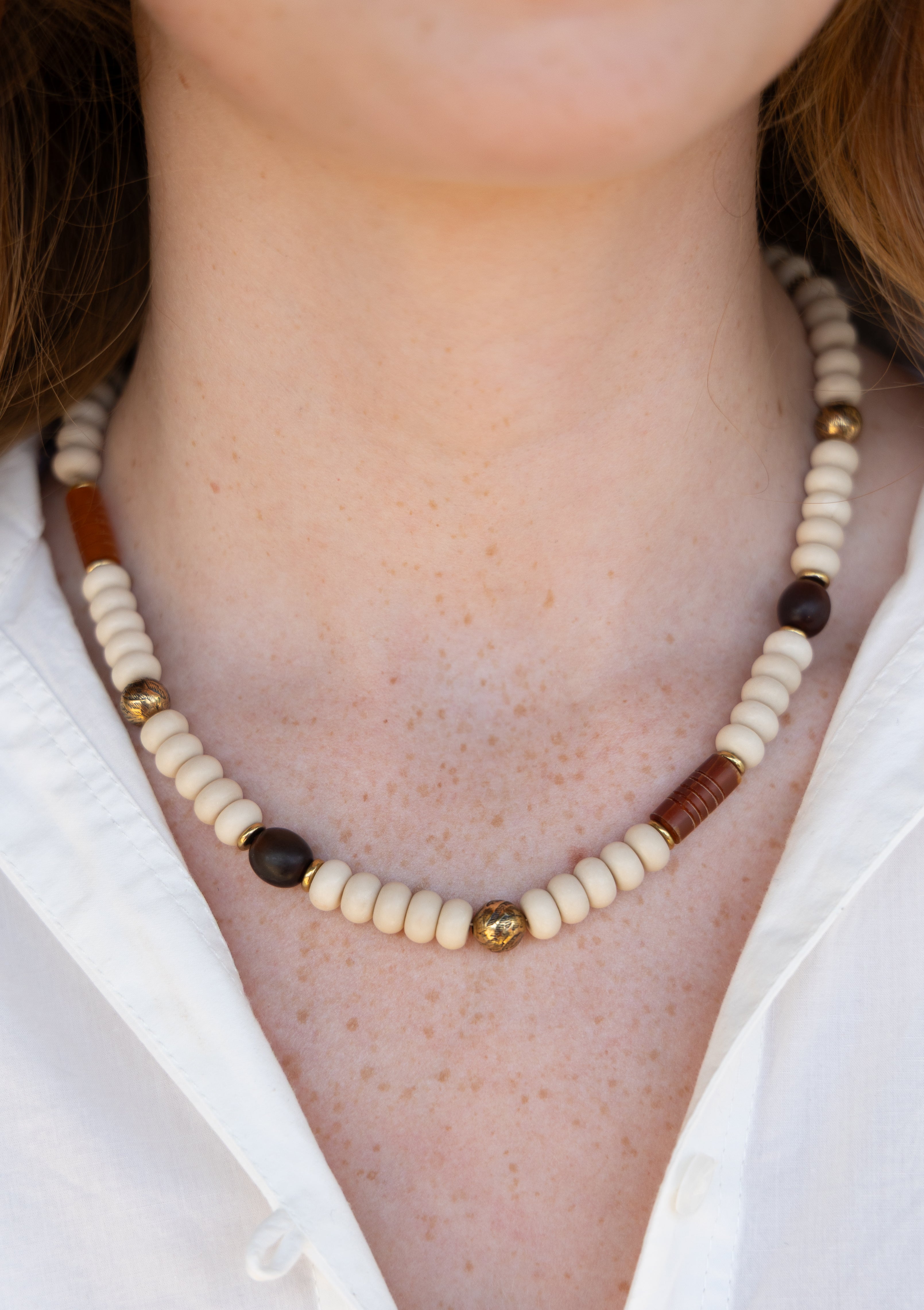 16"-18" Natural Shell and Brass Necklace