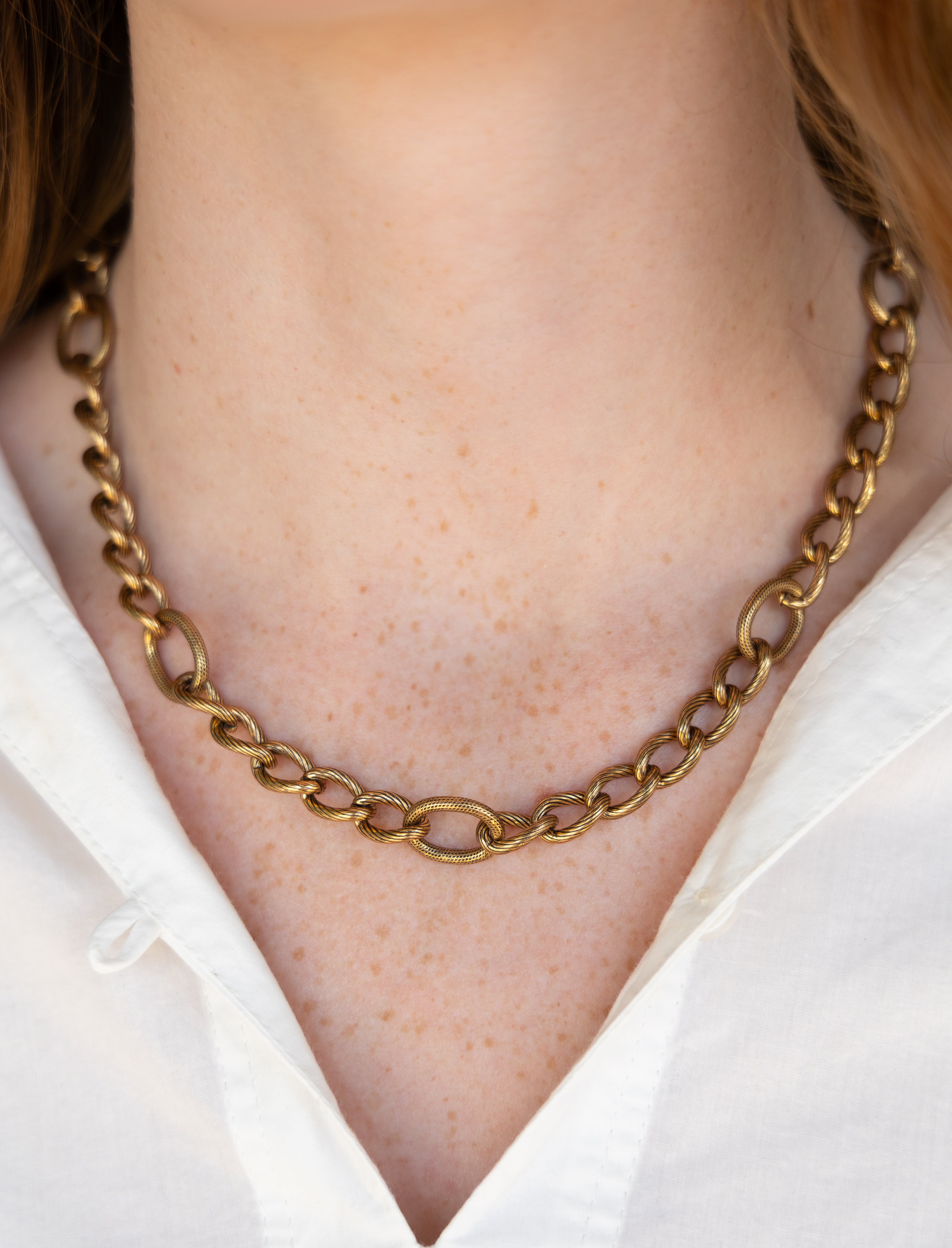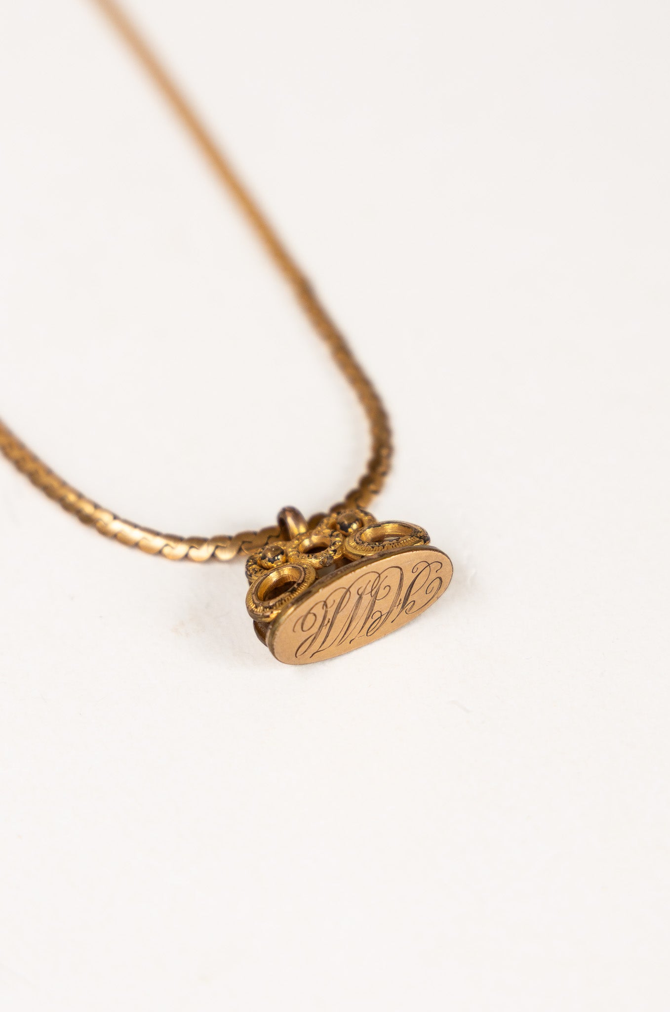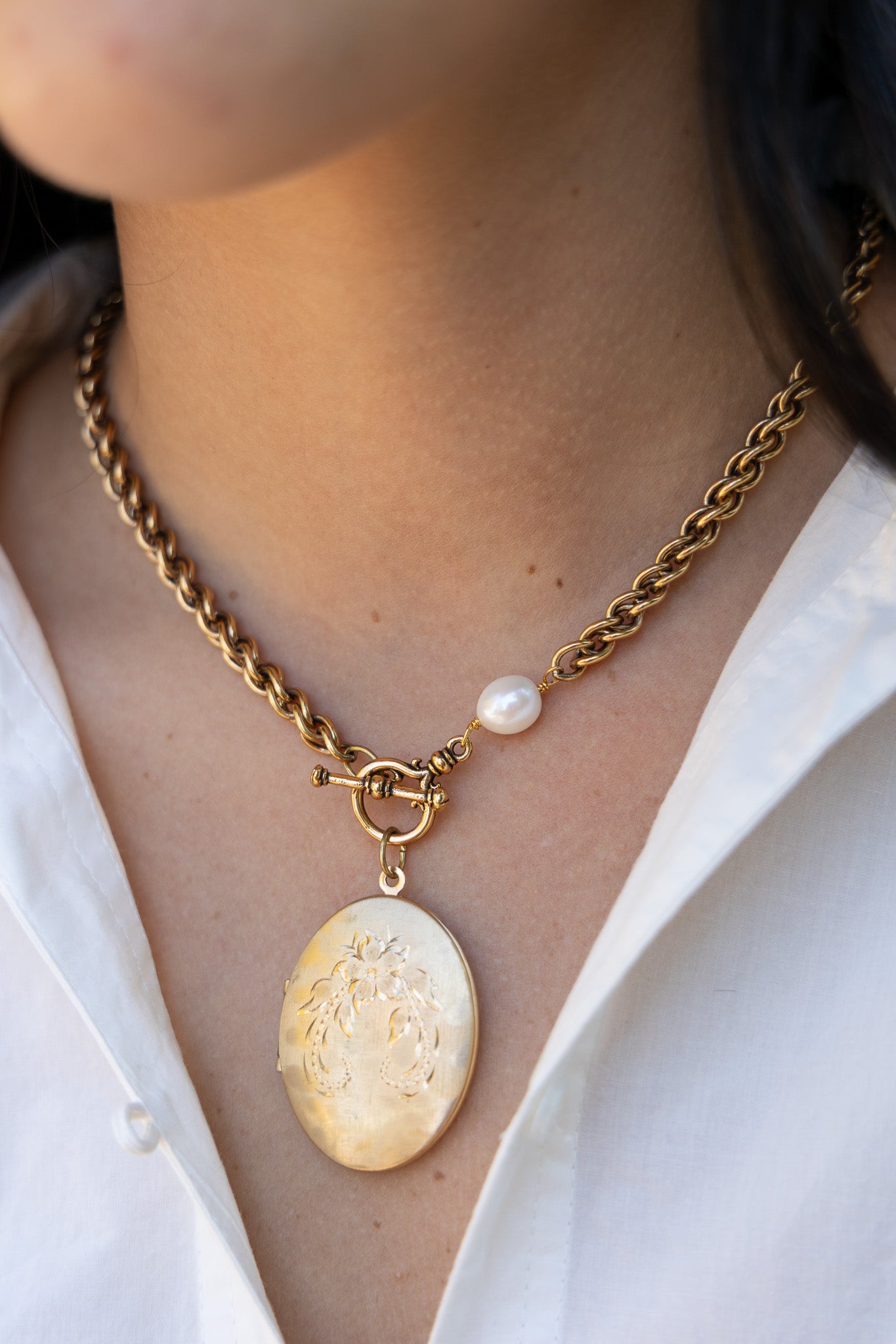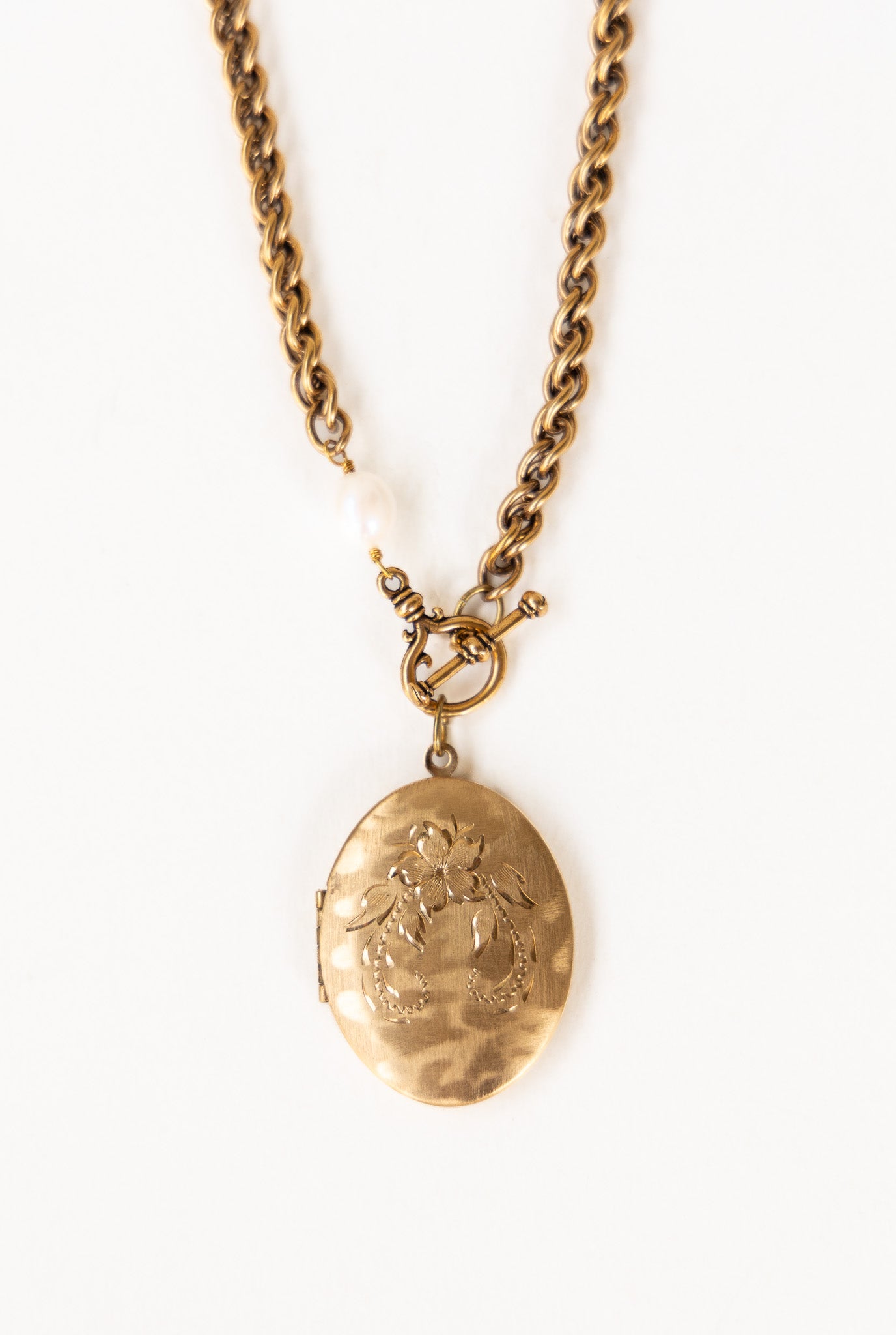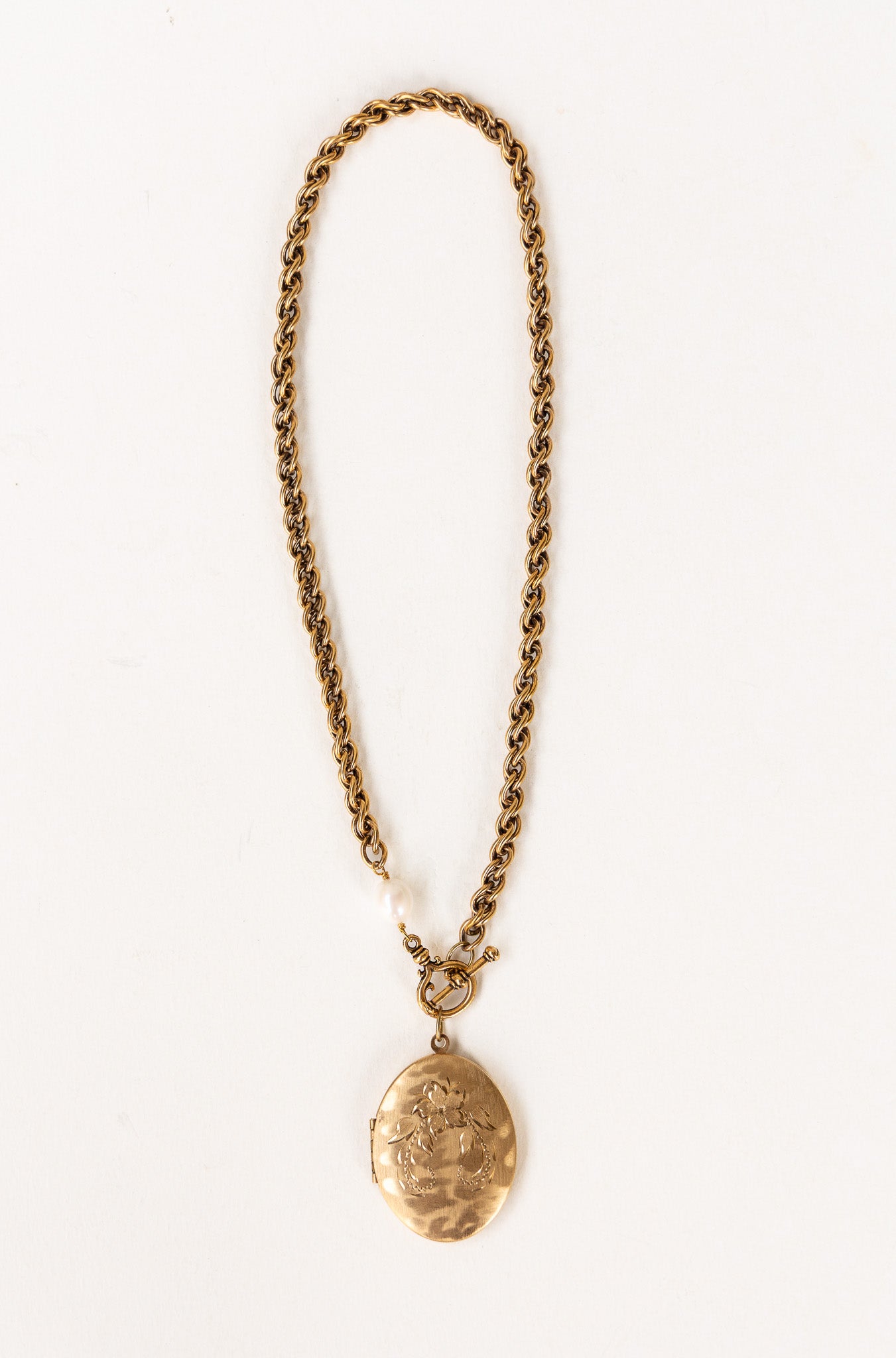 One of One #1476 :: 18" Vintage Chain Necklace with Floral Etched Locket