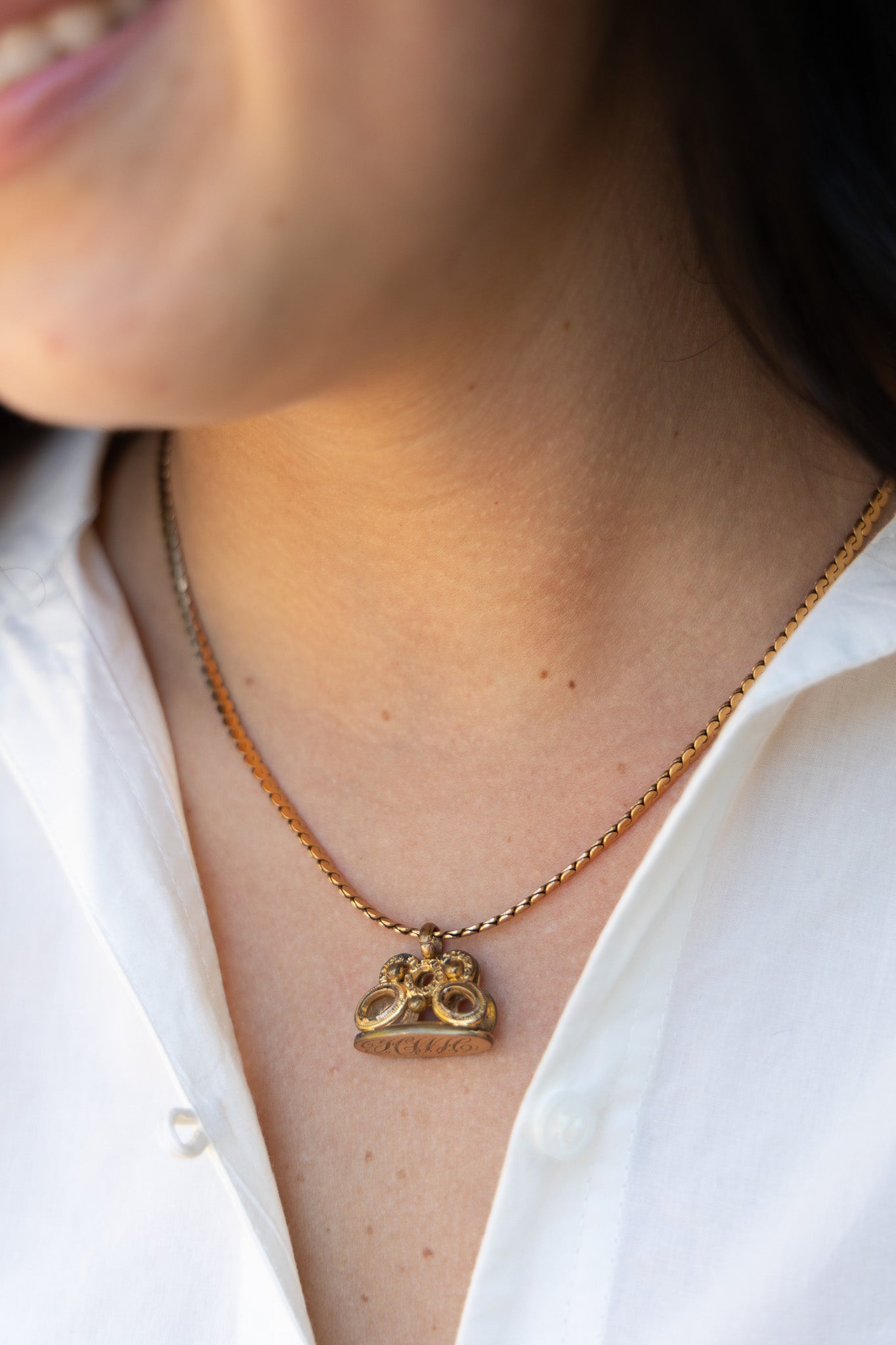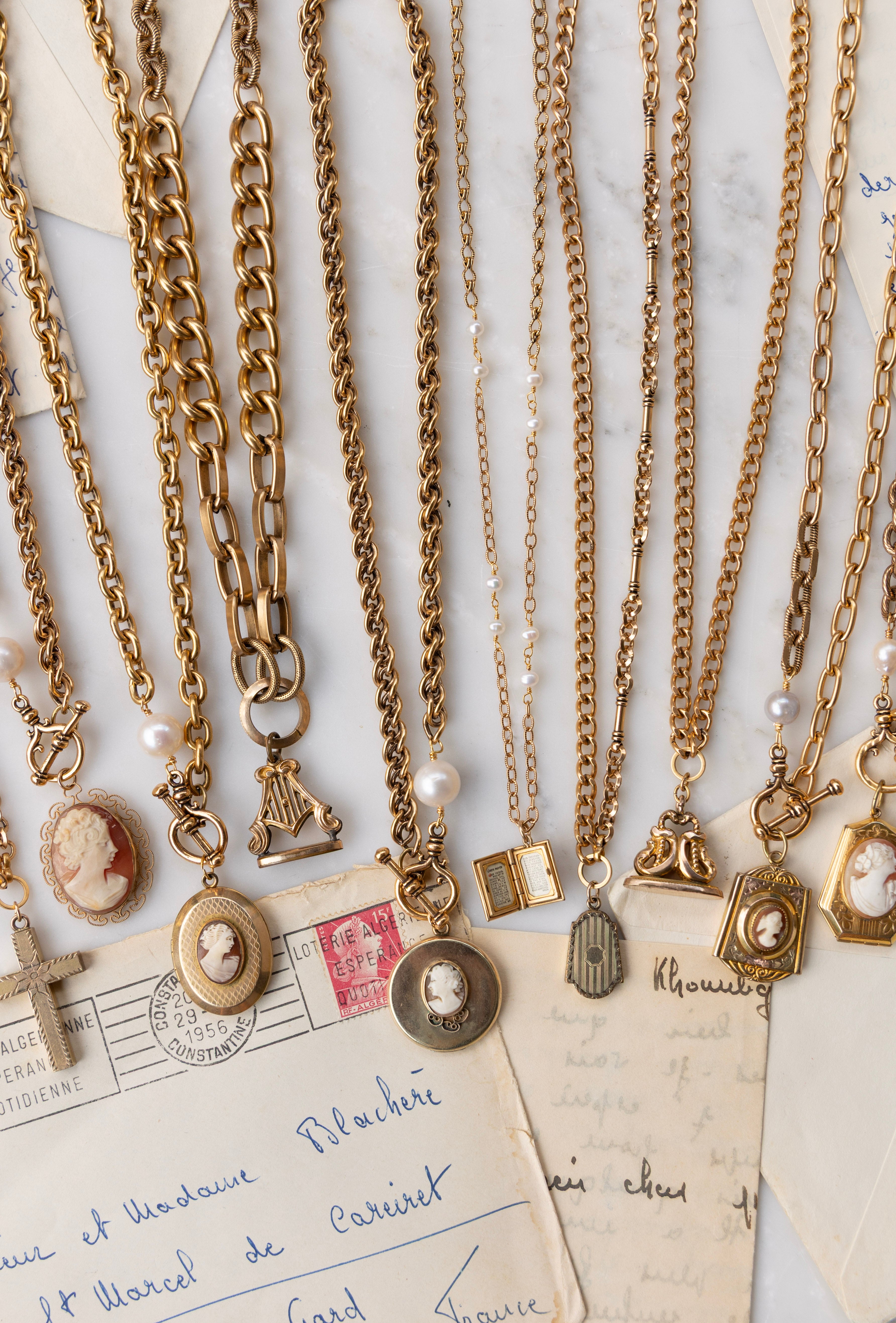 One of One #1468 :: 18" Vintage Chain Necklace with Watch Fob Pendant