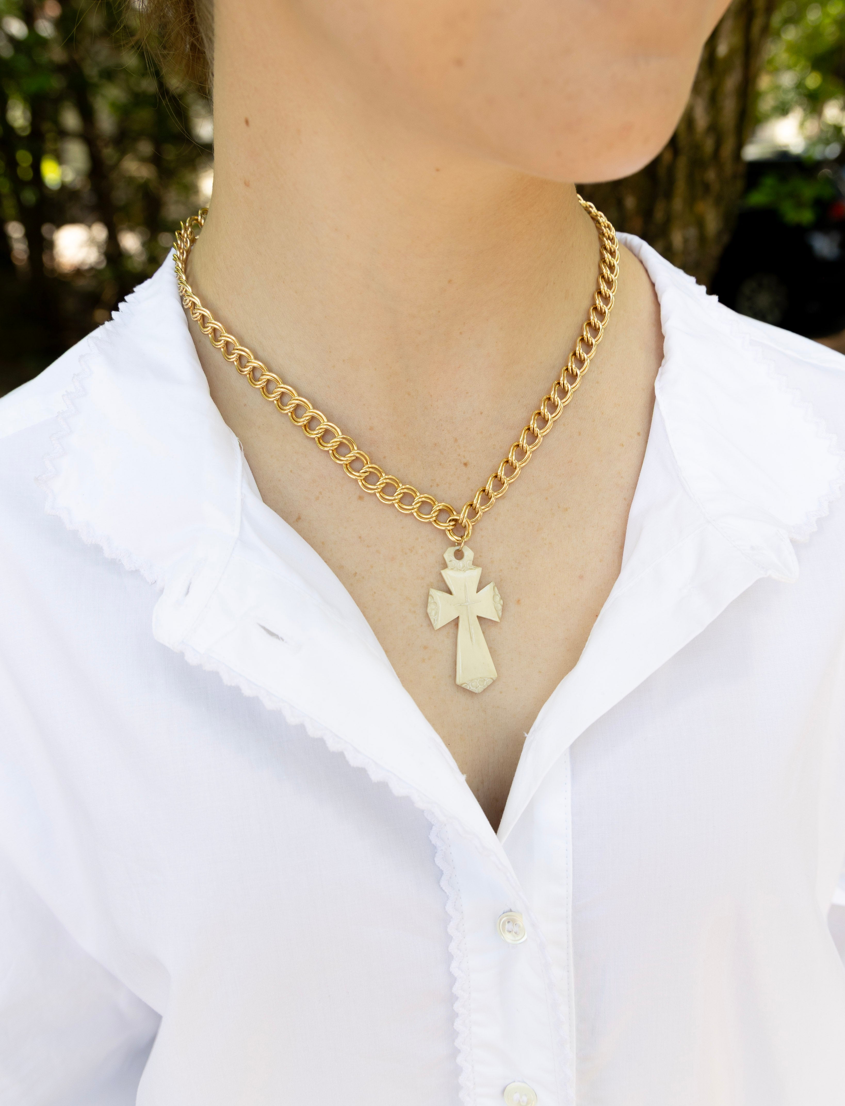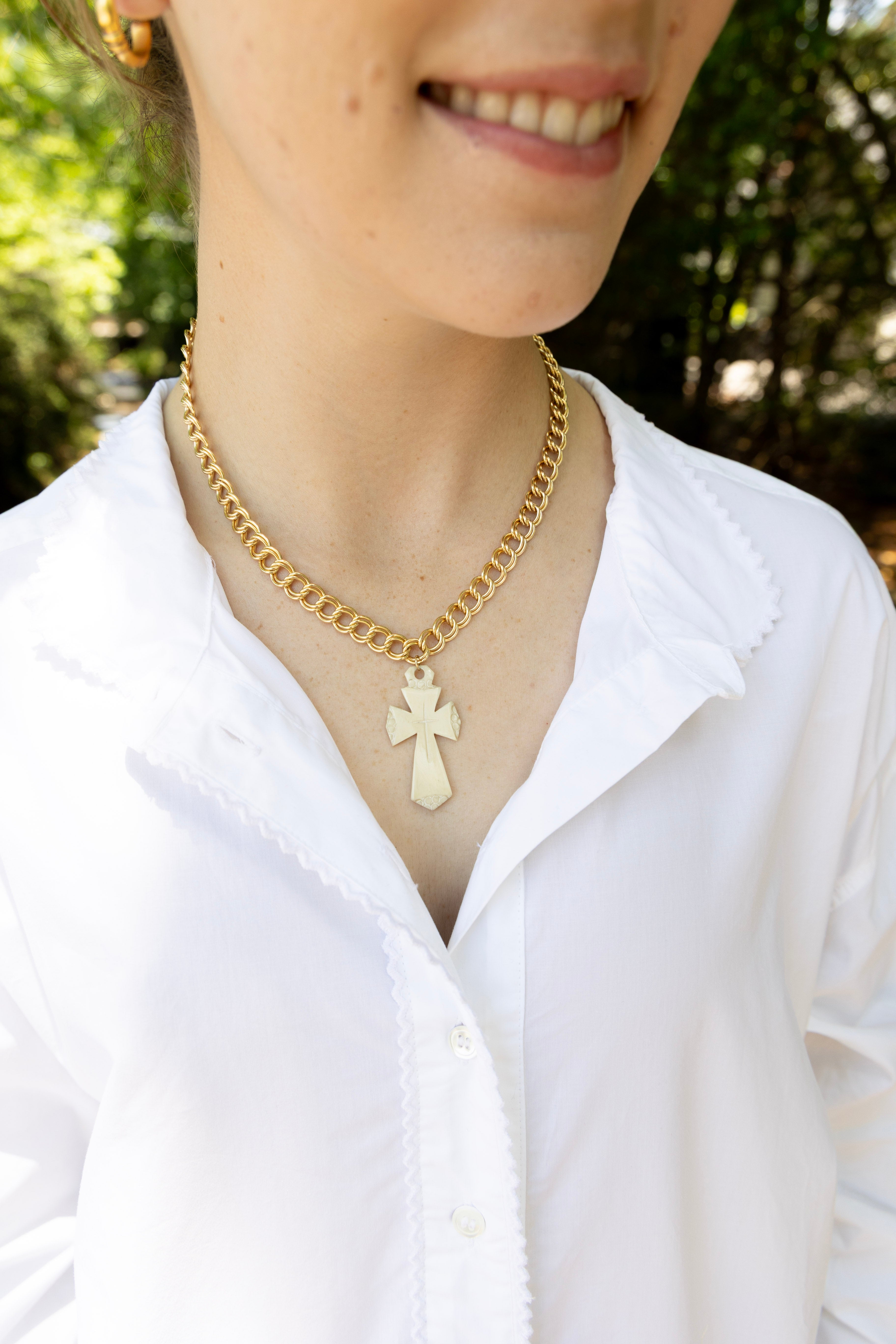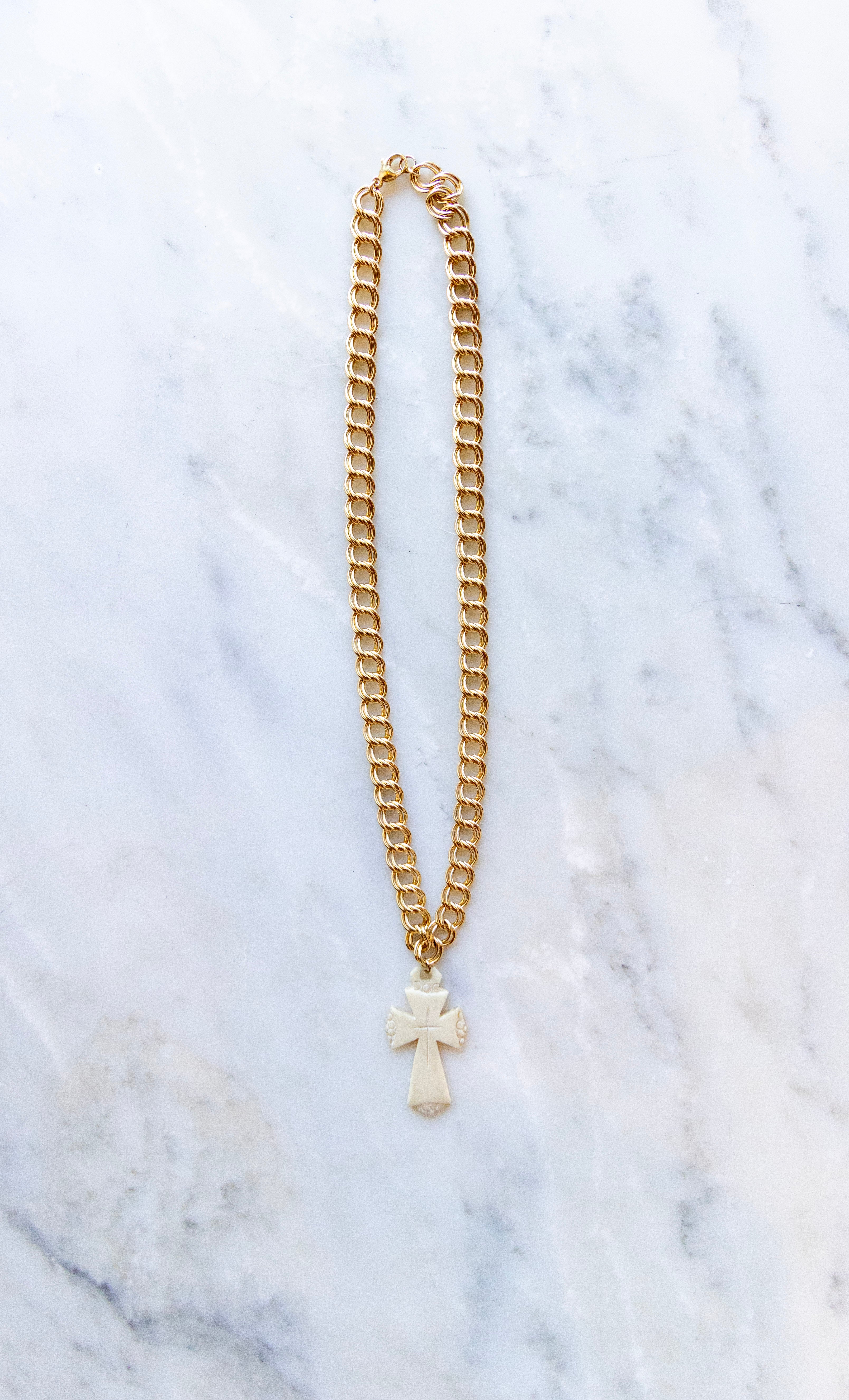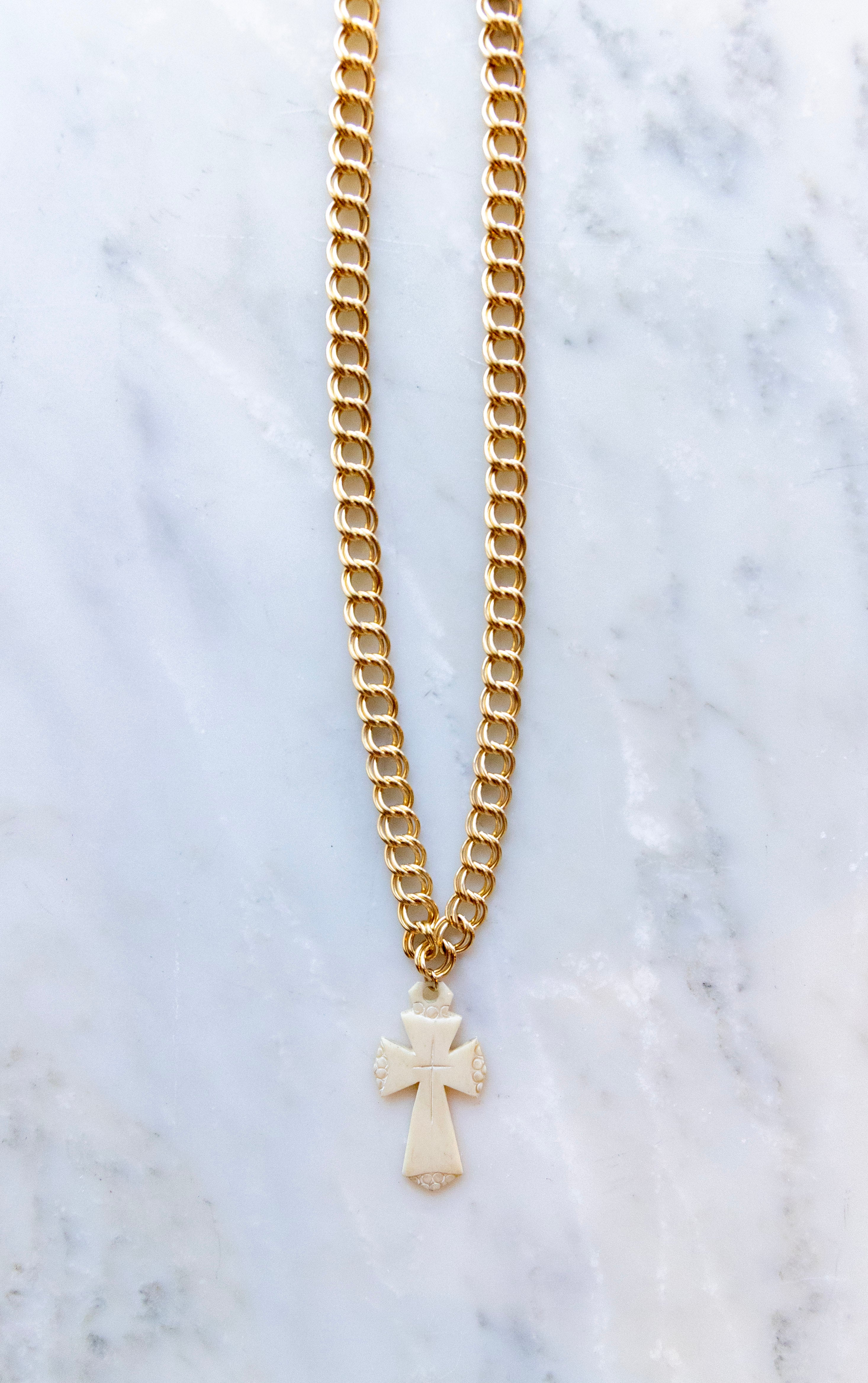 One of One #1305 :: 18" Gold Filled Melissa Necklace with Antique Etched Ivory Cross
